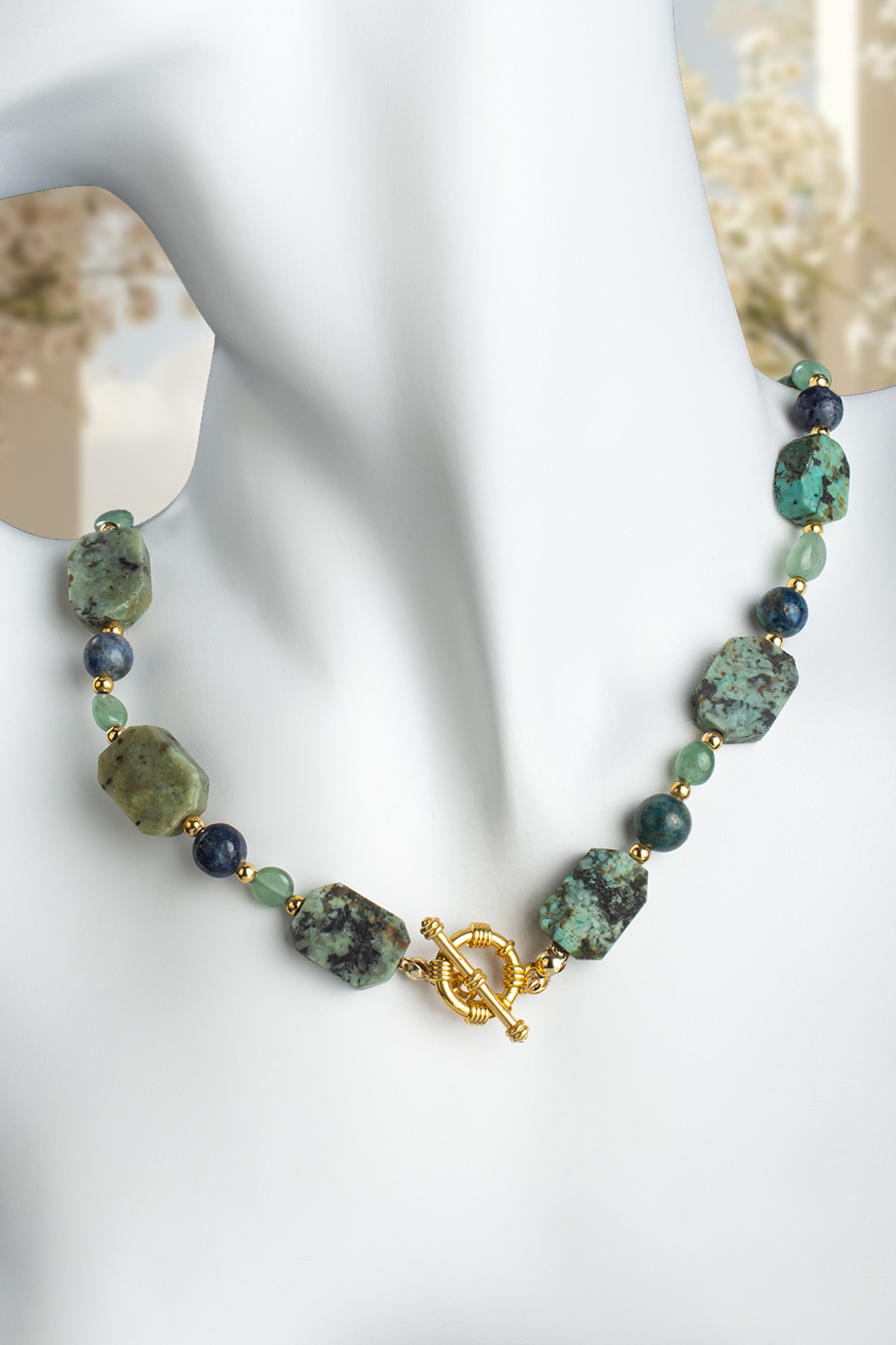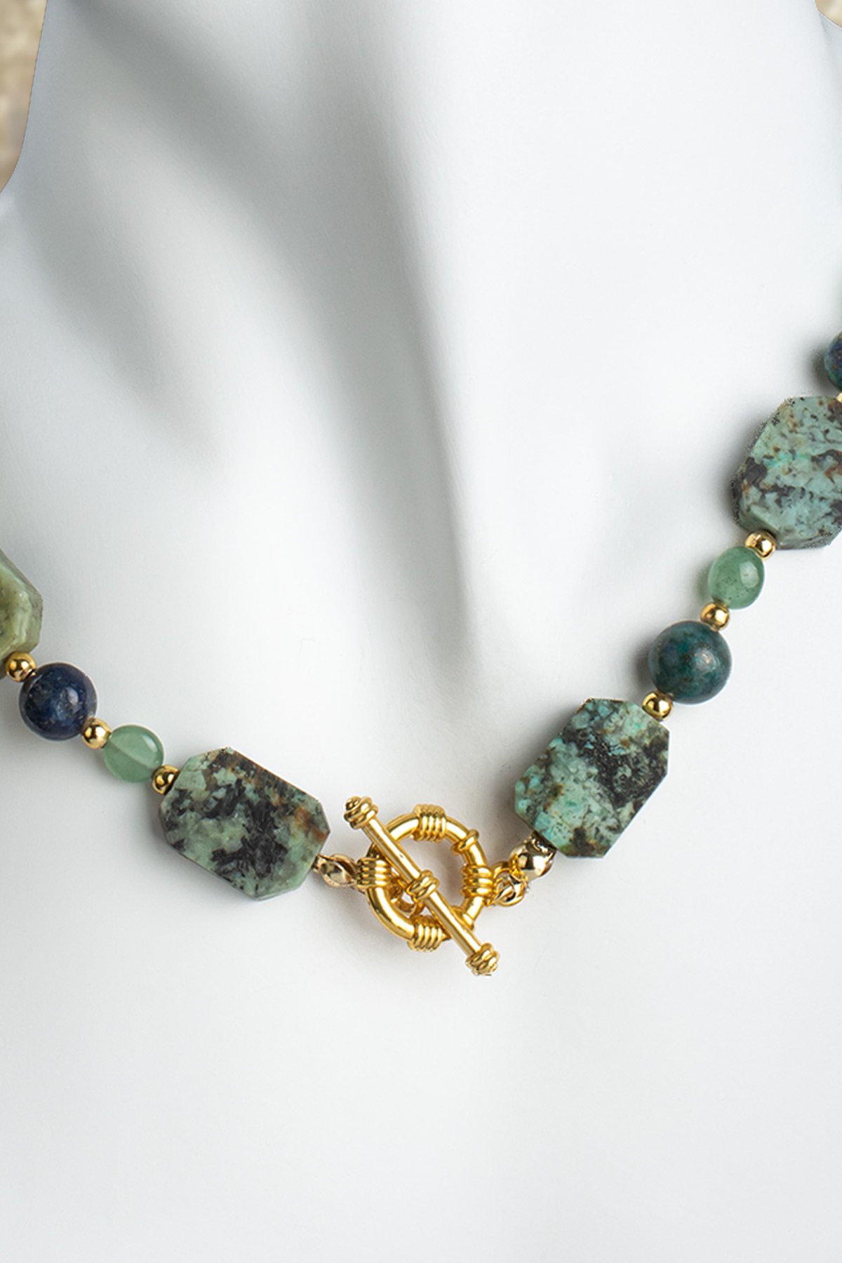 Afrika Turkuaz Doğal Taş Özel Kesim T Kapamalı Kolye