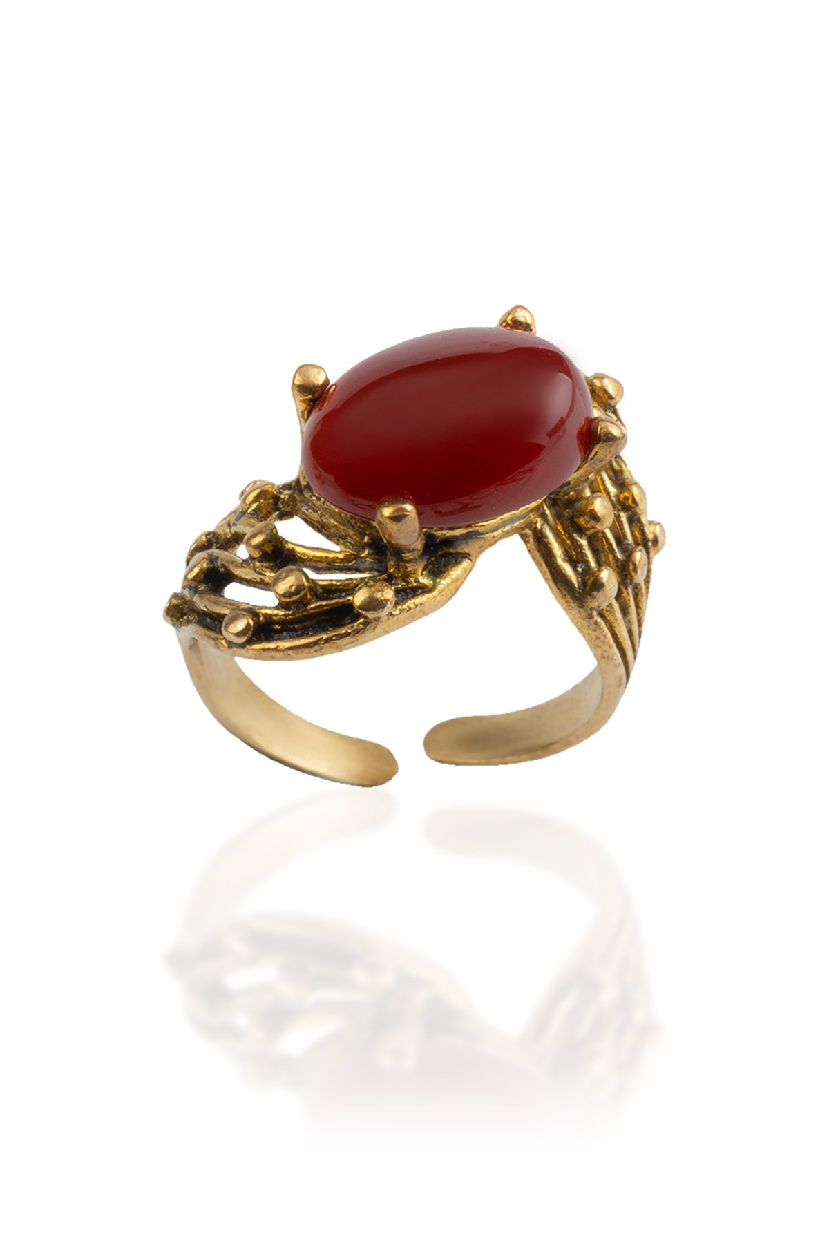 Akik Doğal Taş Bronz Elips Kesim Ayarlanabilir Yüzük