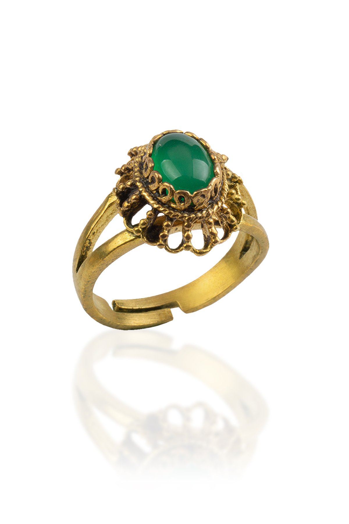 Akik Doğal Taş Bronz Oval Kesim Ayarlanabilir Yüzük (DGLYZK-0164)