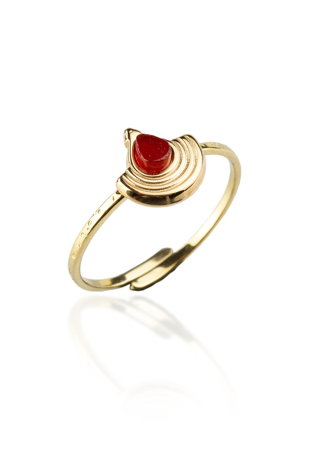 Akik Doğal Taş Çelik Damla Kesim Ayarlanabilir Yüzük (DGLYZK-0137)