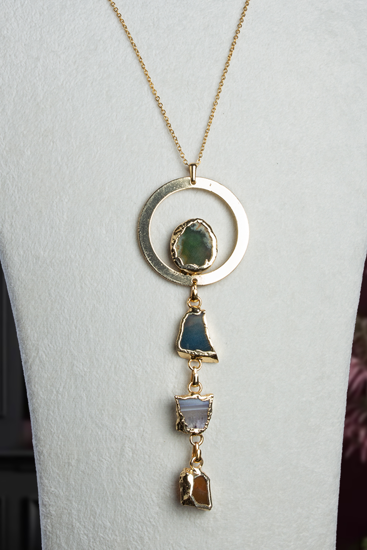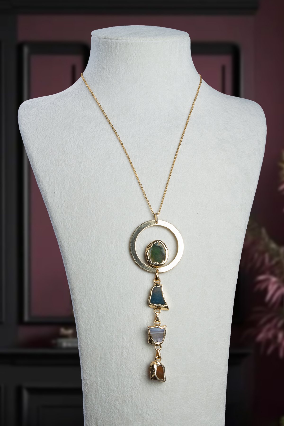 Akik Doğal Taş Ham Kütle Kesim 4 Taşlı Kolye (KLYDGL-0658)
