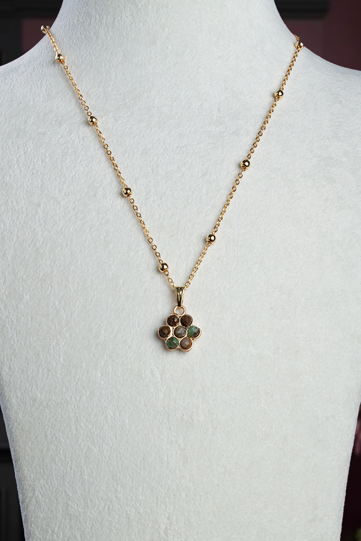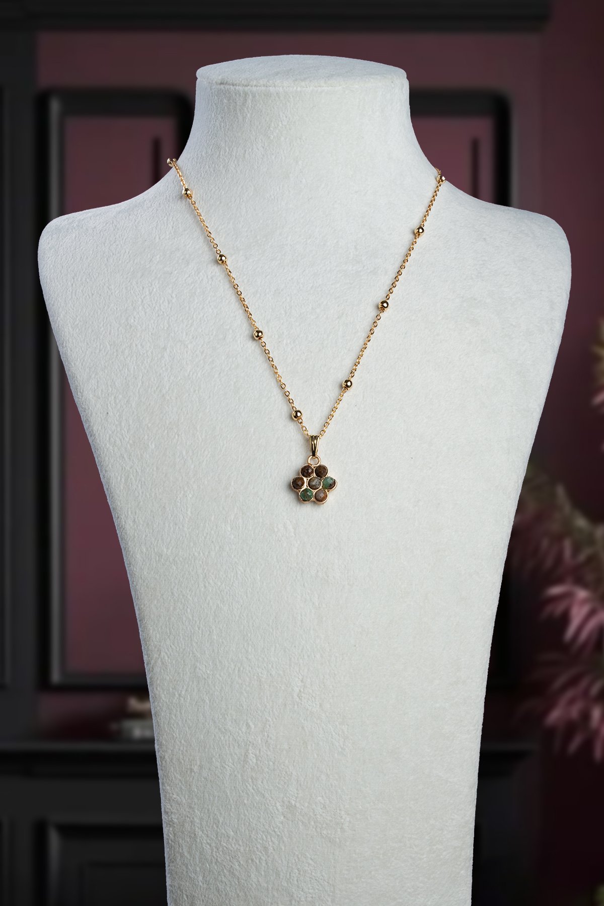 Akik Doğal Taş Karışık Çiçek Kesim Kolye (KLYDGL-0670)
