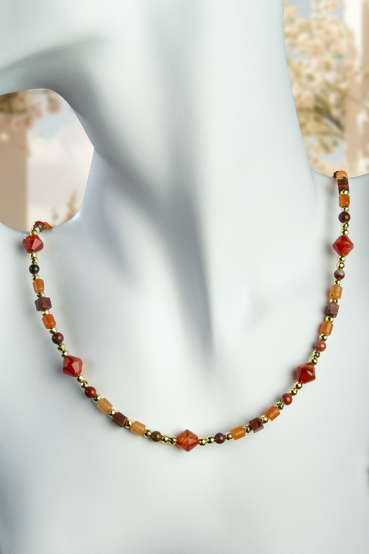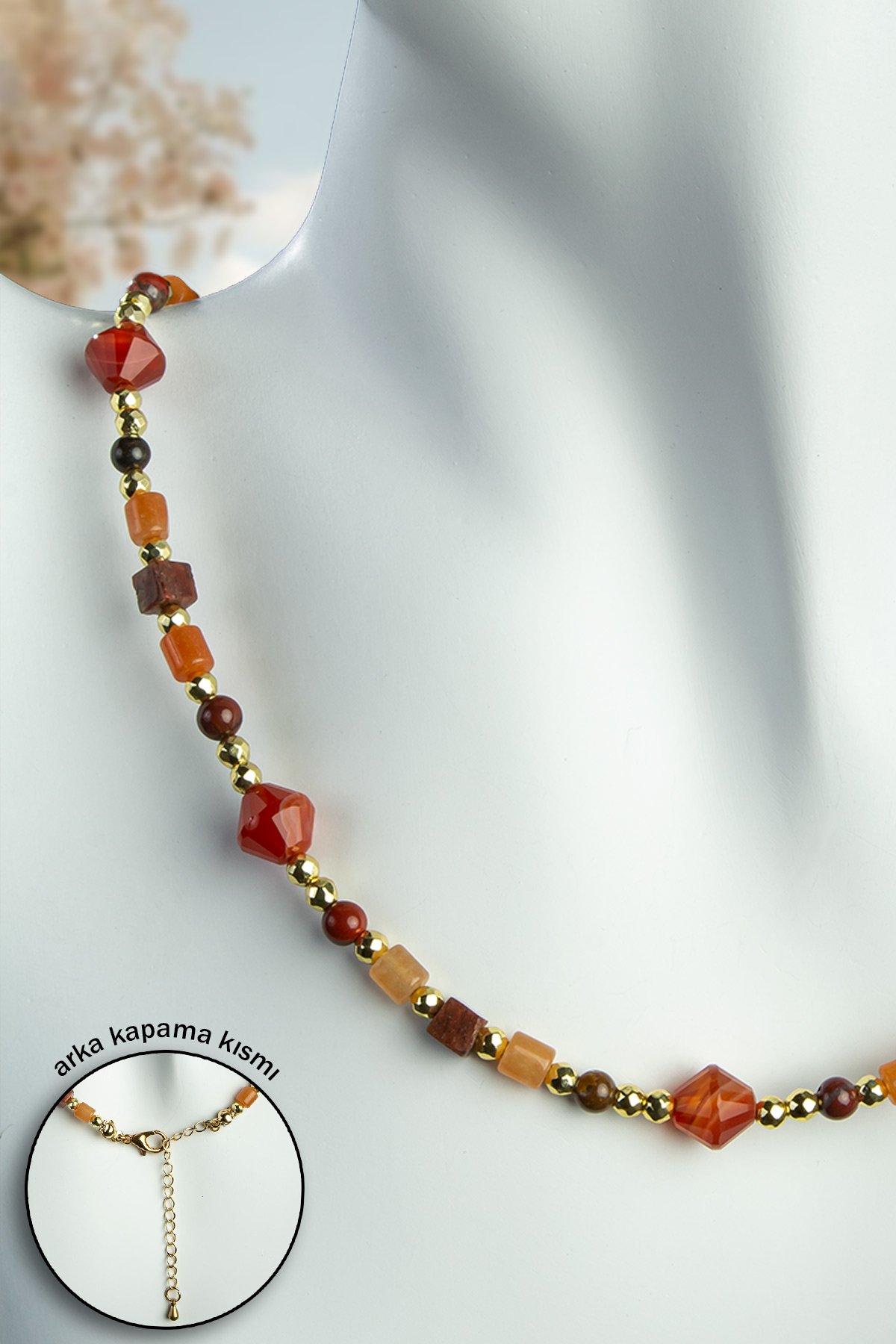 Akik Doğal Taş Karışık Kesim Zincir Kapamalı Kolye