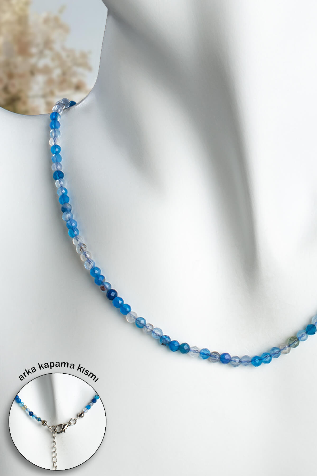 Akik Doğal Taş Mavi Faset Küre Kesim 3mm Kolye (KLYDGL-0513)