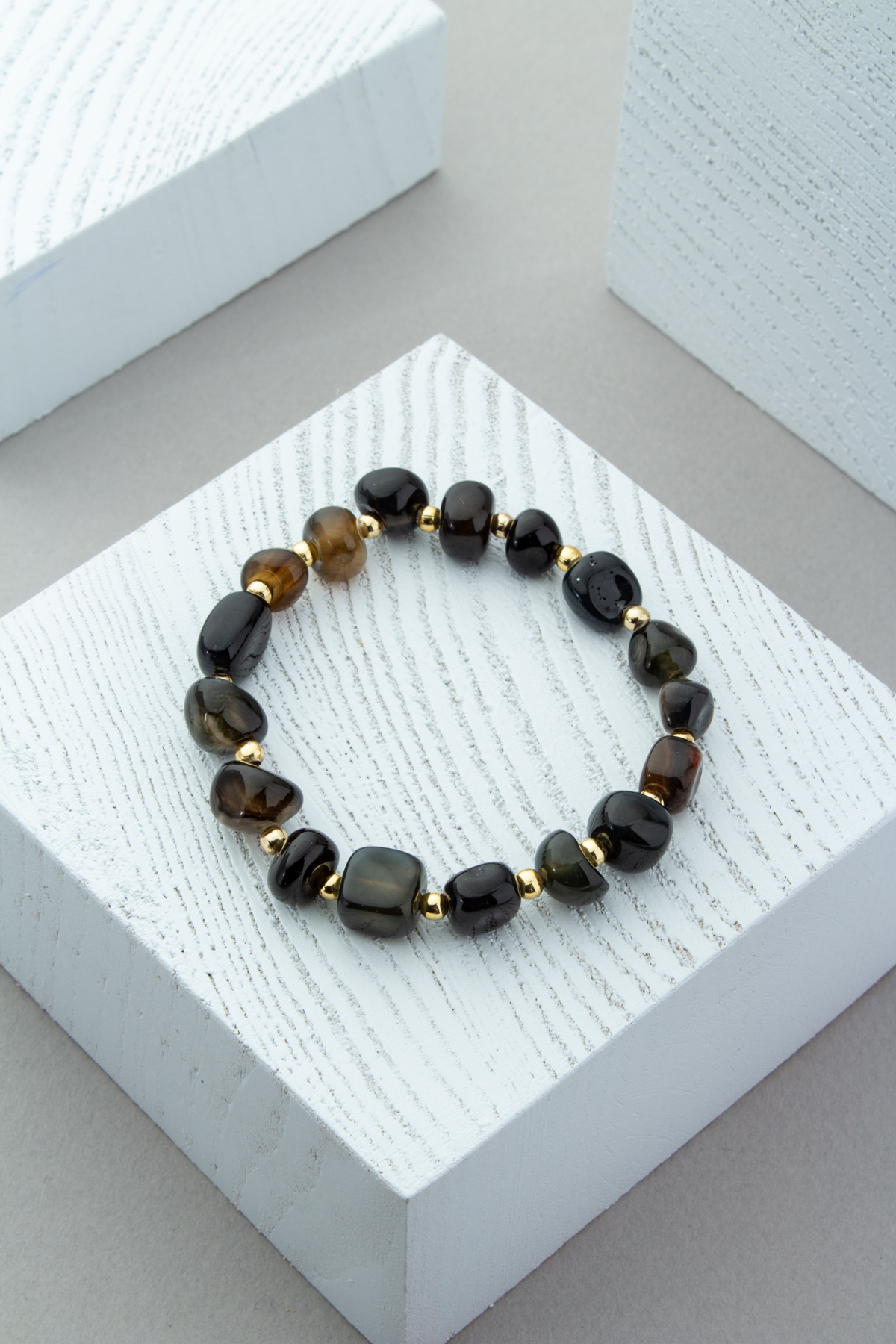 Akik Doğal Taş Kahverengi Tımbıl Kesim Bileklik (BLKMSN-0117)