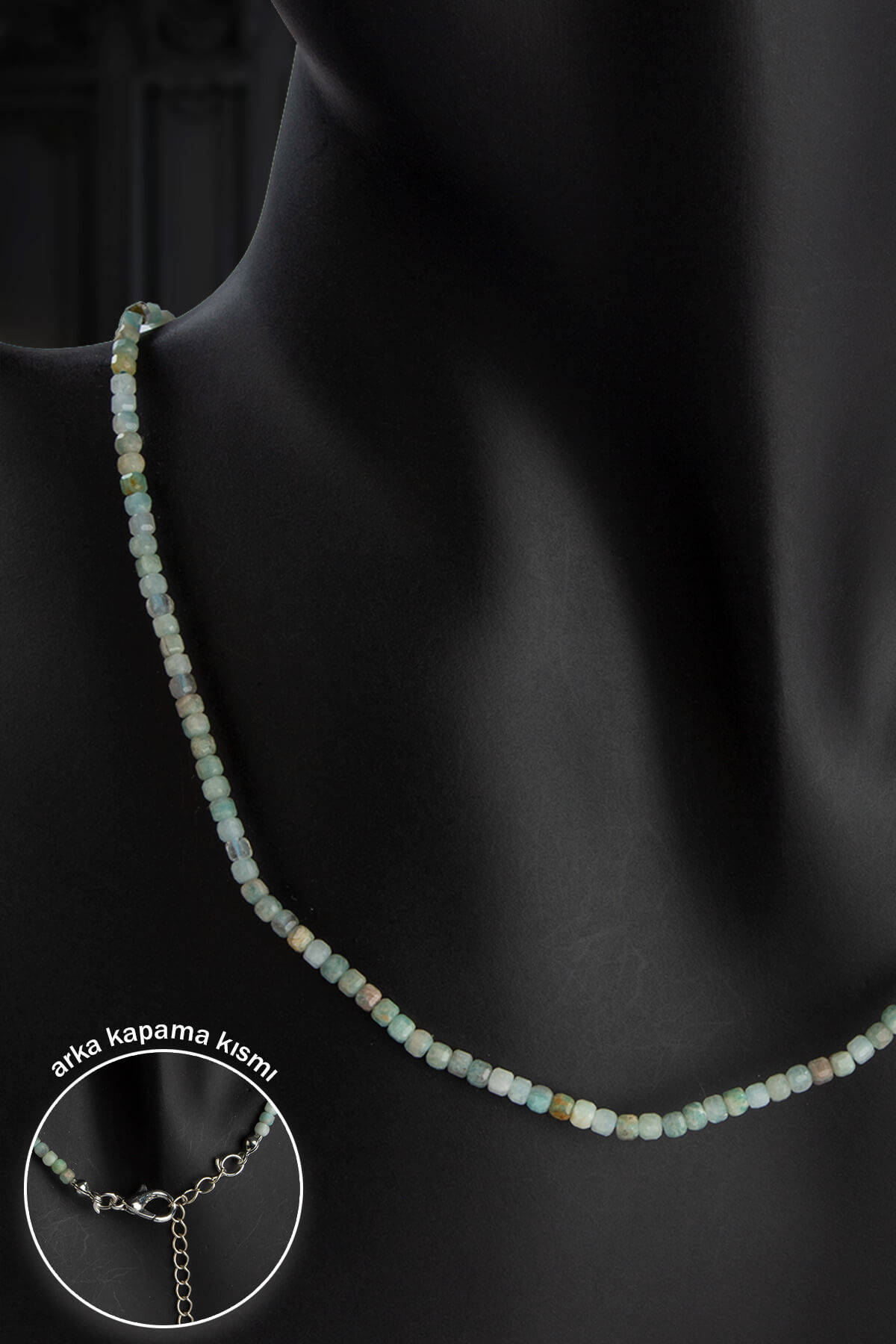 Amazonit Doğal Taş Faset Küp Kesim 2mm Kolye (KLYDGL-0532)