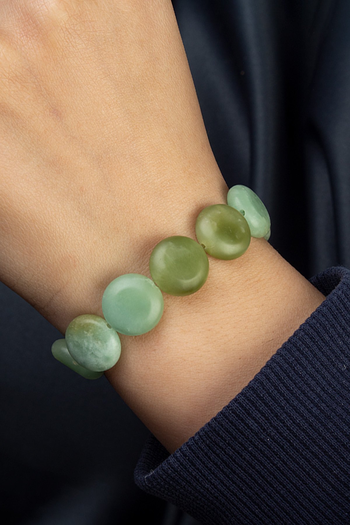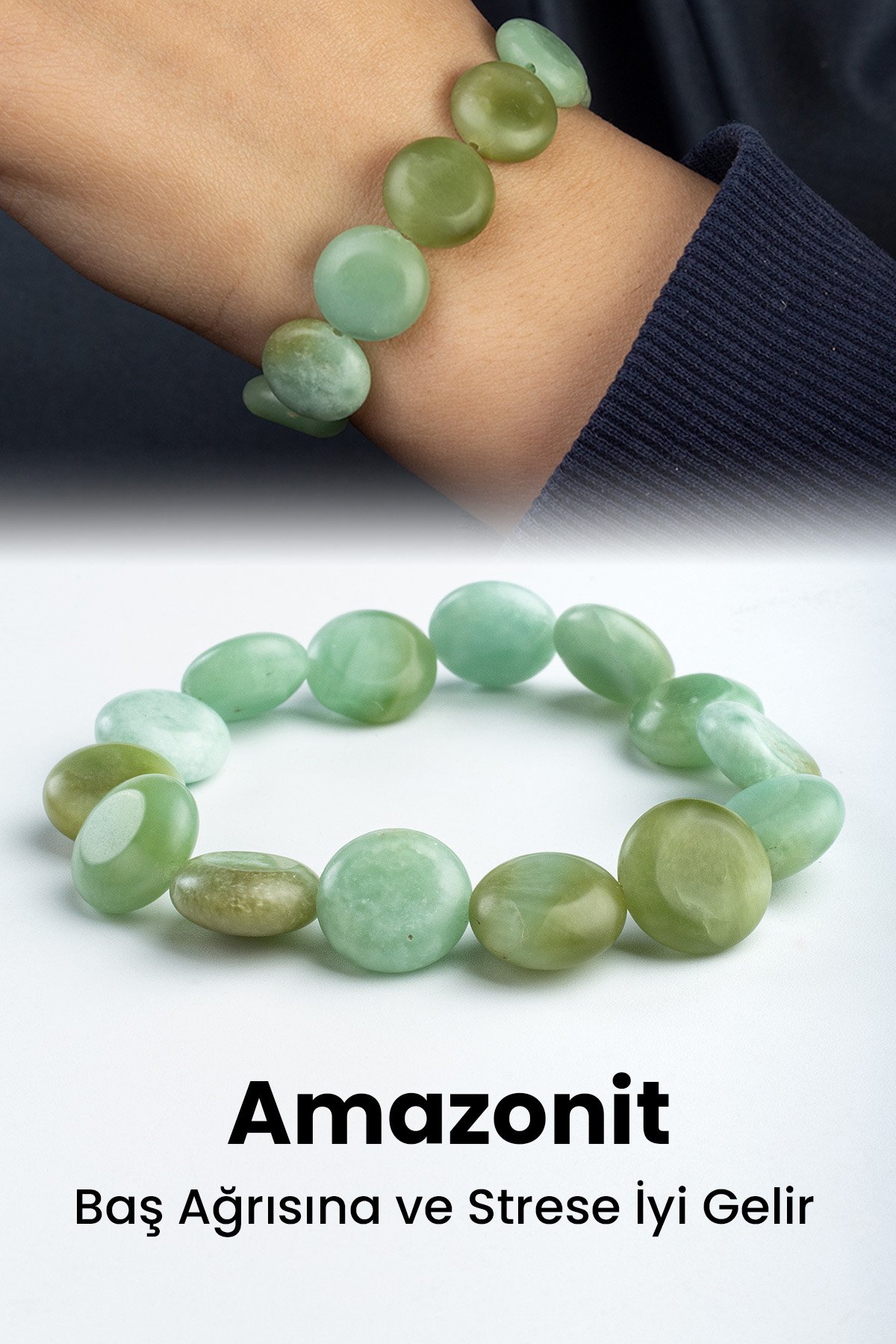 Amazonit Doğal Taş Yassı Daire Kesim 12mm Bileklik (BLKMSN-0295)