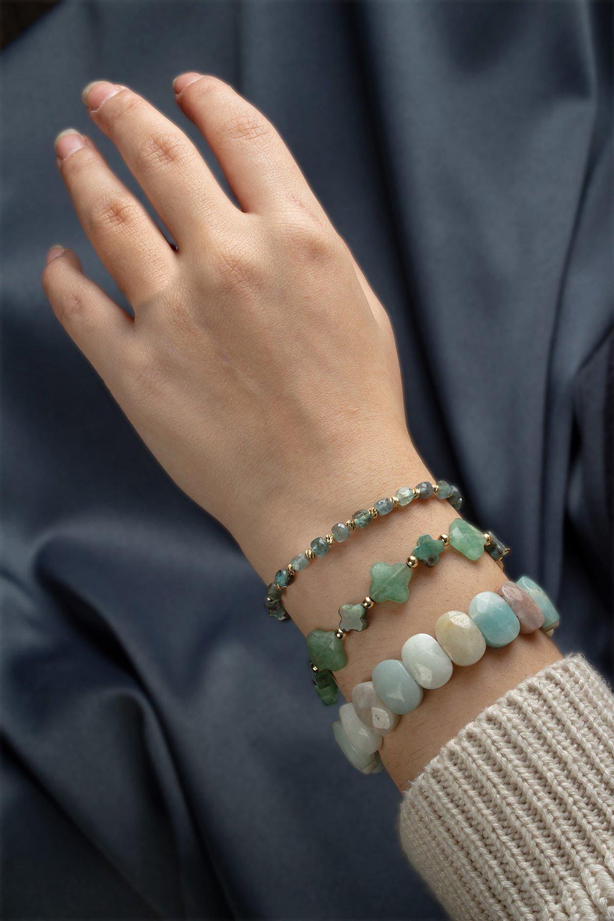 Adını Amazon Nehri’nden alan Amazonit, genellikle yeşil-mavi tonlarında görülen feldspat grubuna ait yarı değerli bir taştır. Doğal desenleri ve yumuşak renk geçişleriyle dikkat çeker; dekoratif kullanımların yanı sıra spiritüel çalışmalarda da tercih edilir.