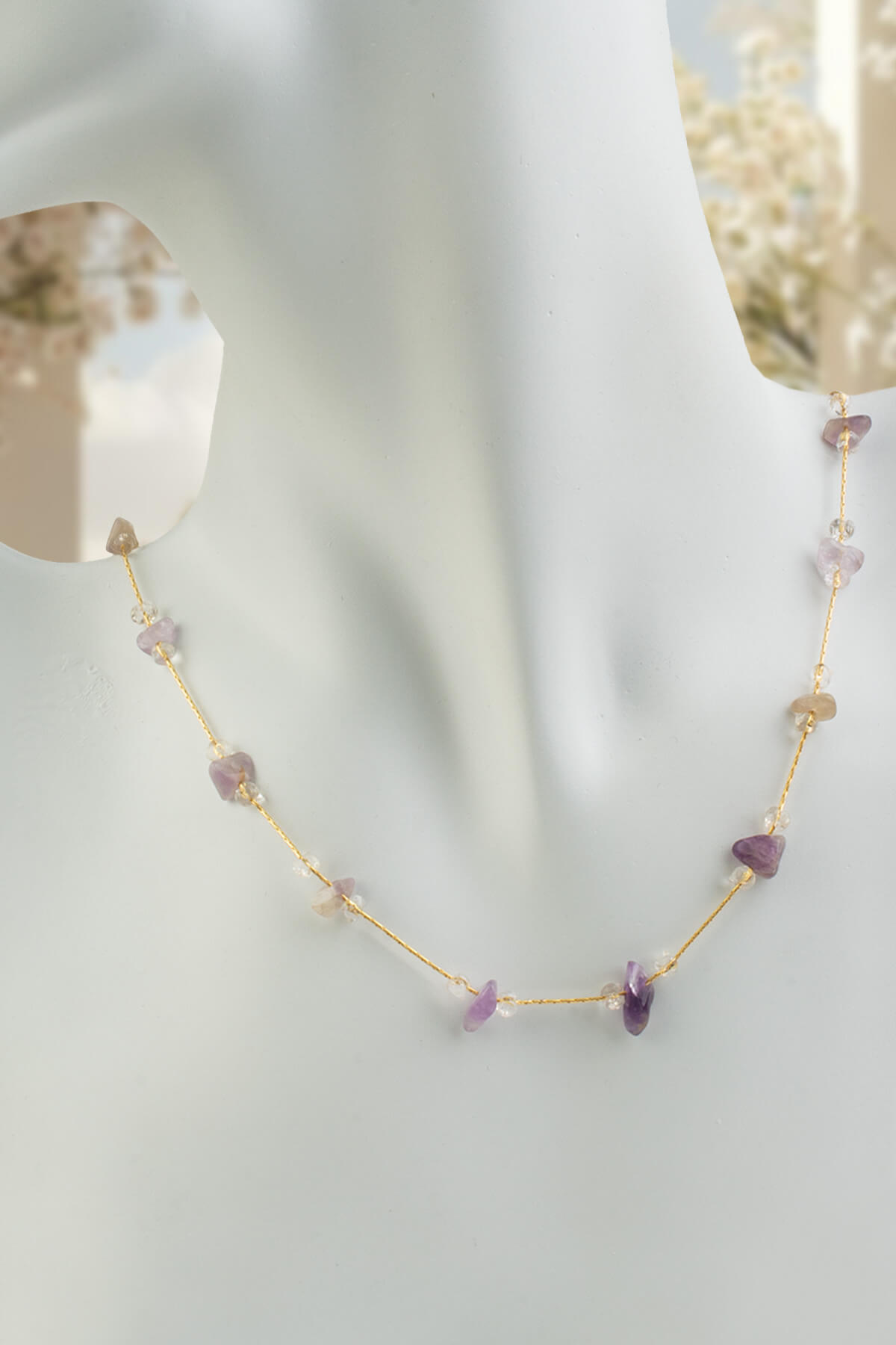 Ametist Doğal Kırık Taş Yapıştırma Lak Kaplama Kolye (KLYDGL-0358)