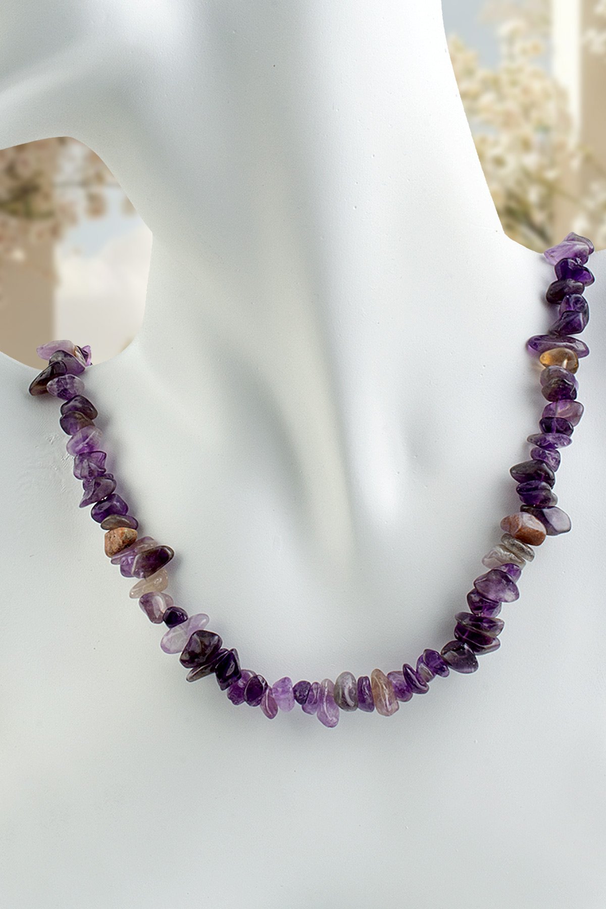 Ametist Doğal Kırık Taş Tam Tur Kolye (KLYDGL-0554)