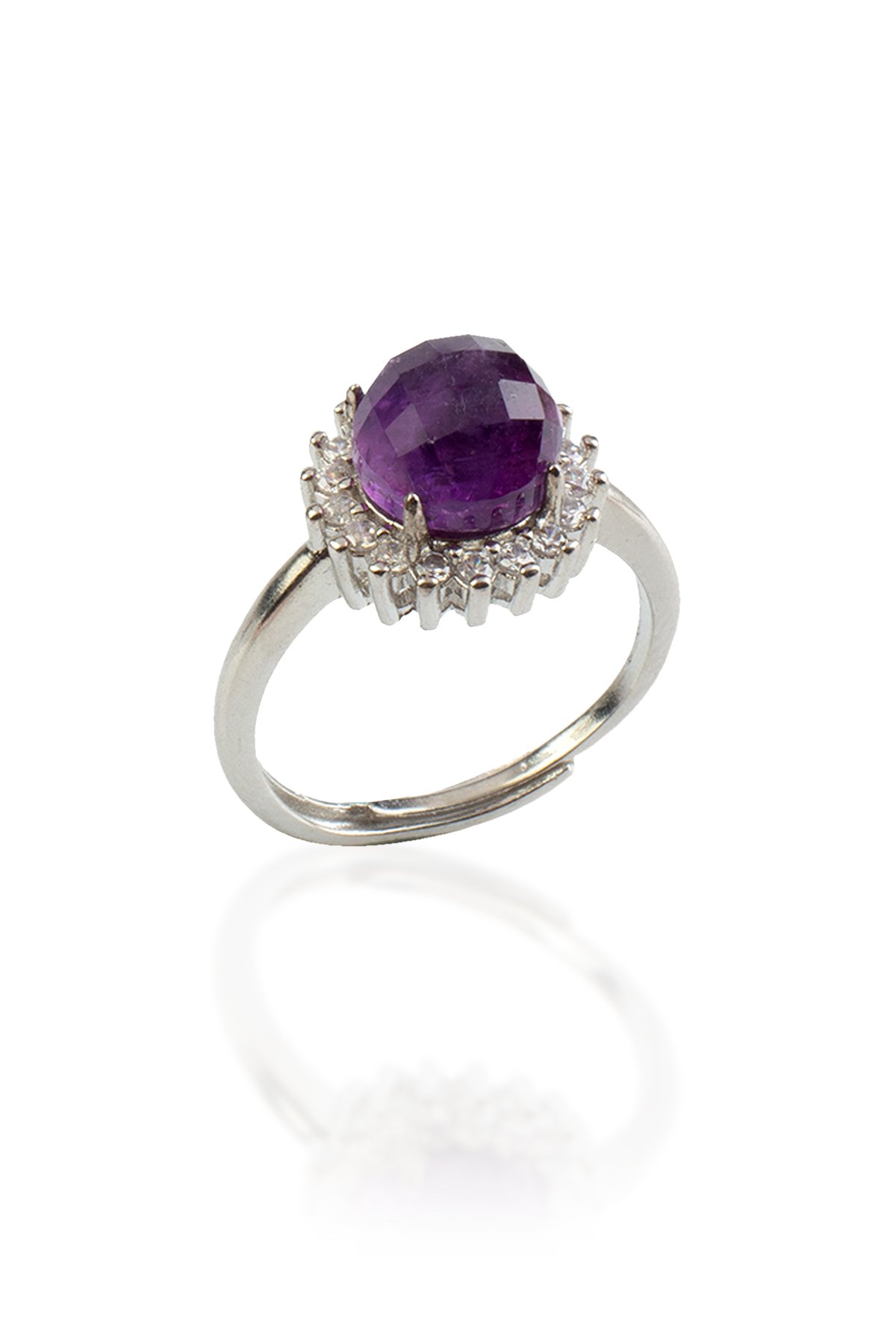 Ametist Doğal Taş Faset Kesim Pirinç Üzeri Gümüş Kaplama Ayarlanabilir Yüzük (DGLYZK-0186)