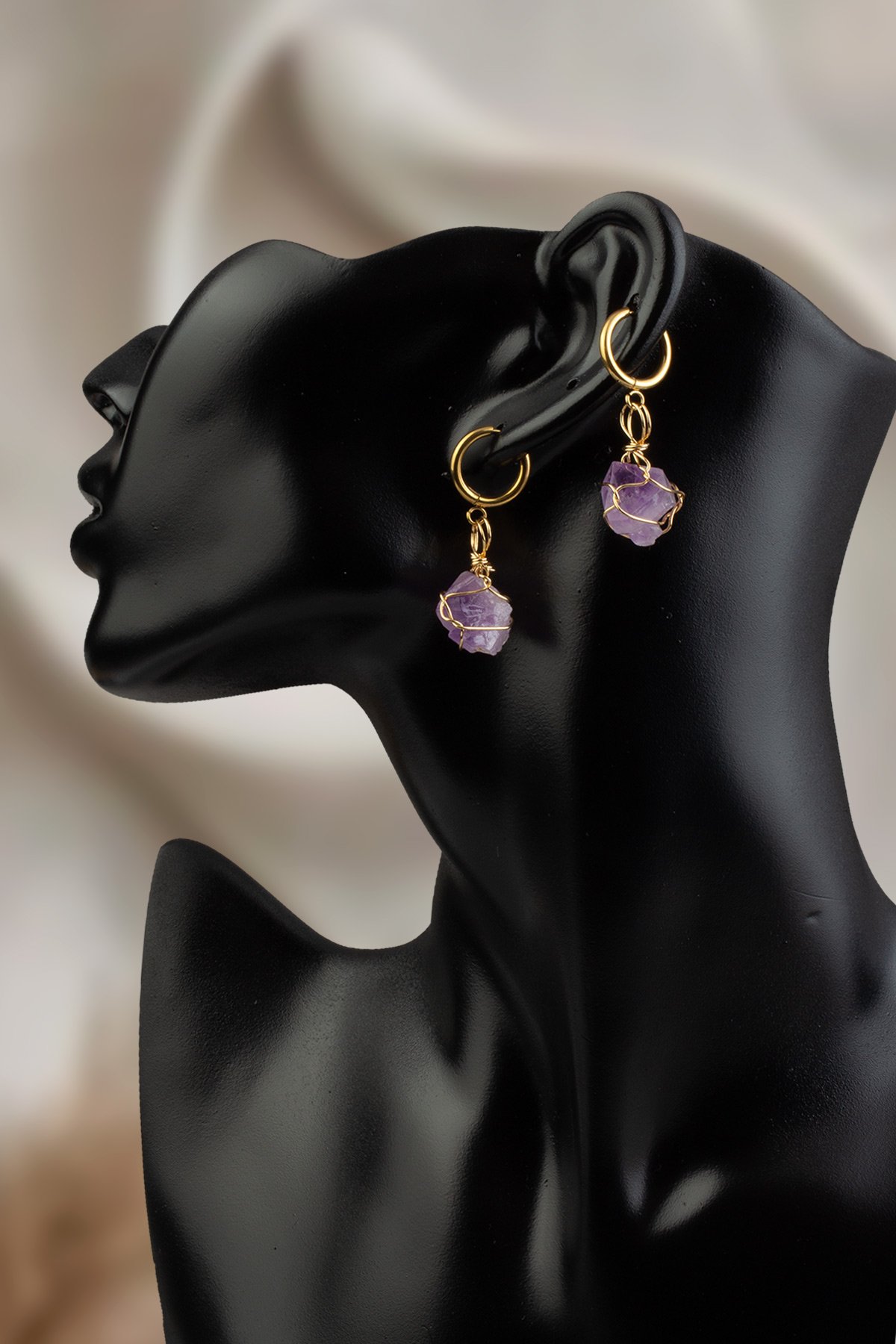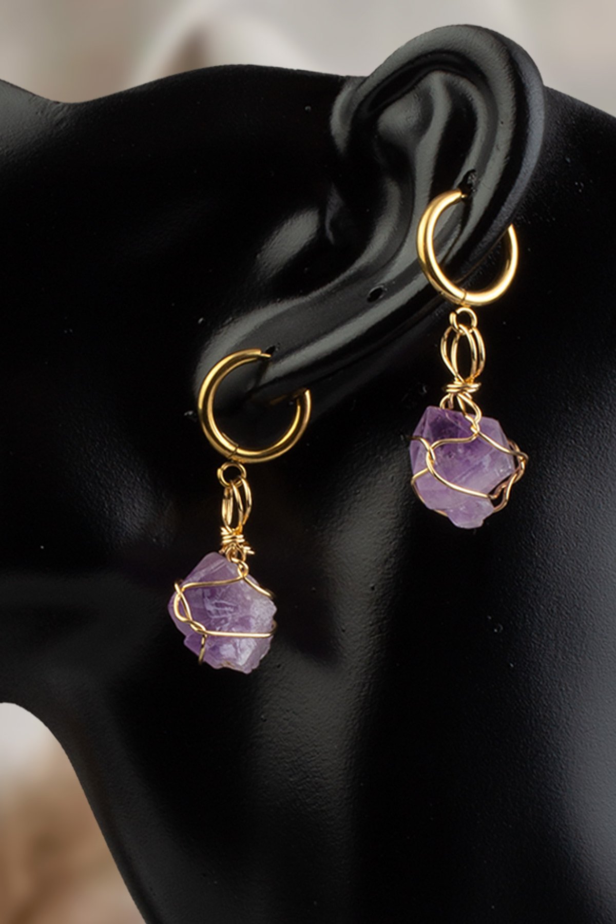 Ametıst Doğal Taş Küpe