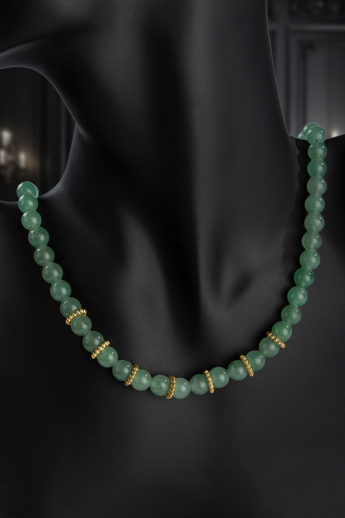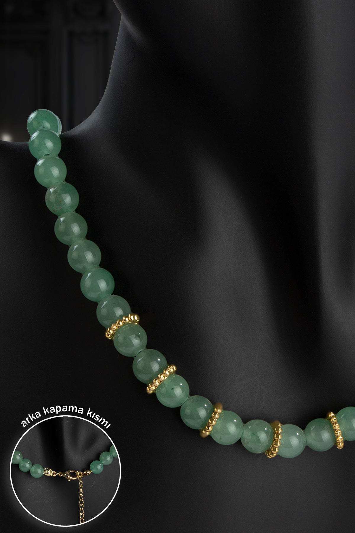 Aventurin Doğal Taş Küre Kesim Zincir Kapamalı Kolye