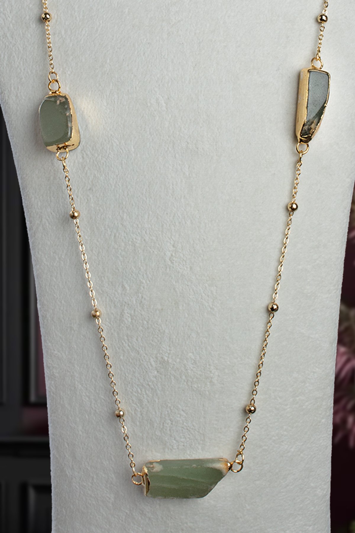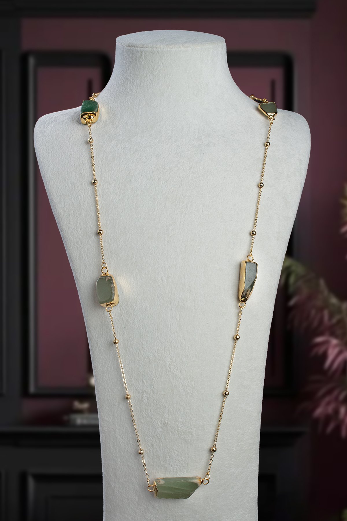 Aventurin Doğal Taş Tamburlu Kütle Taş Uzun Zincir Kolye