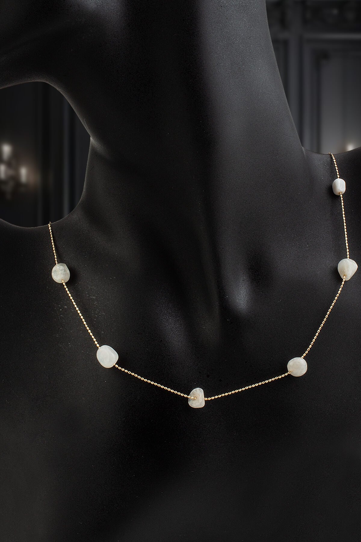 Süt beyazı ve mavi yansımalarıyla bilinen feldspat grubundandır. Işıkla birlikte yumuşak bir parlaklık verir; duygusal denge ve sezgiyle ilişkilendirilir.