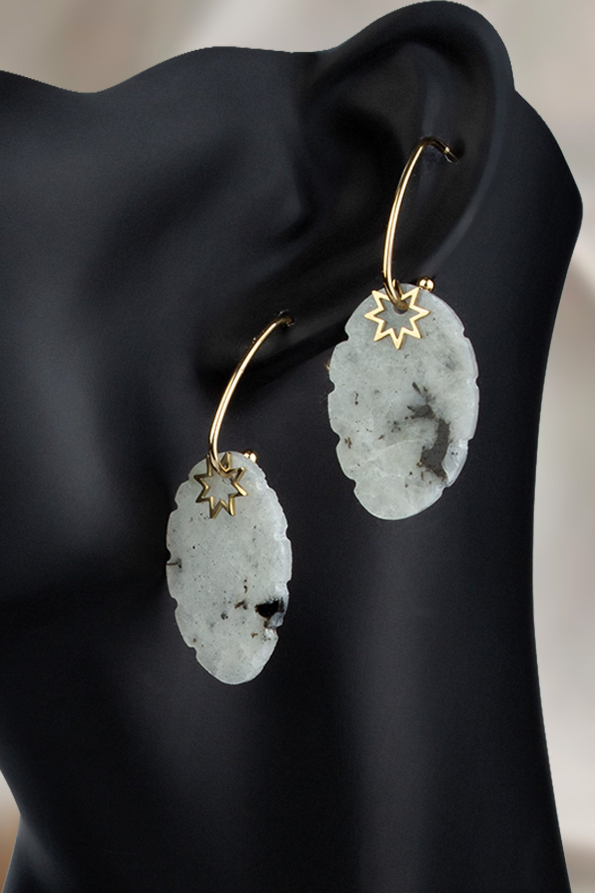 Süt beyazı ve mavi yansımalarıyla bilinen feldspat grubundandır. Işıkla birlikte yumuşak bir parlaklık verir; duygusal denge ve sezgiyle ilişkilendirilir.