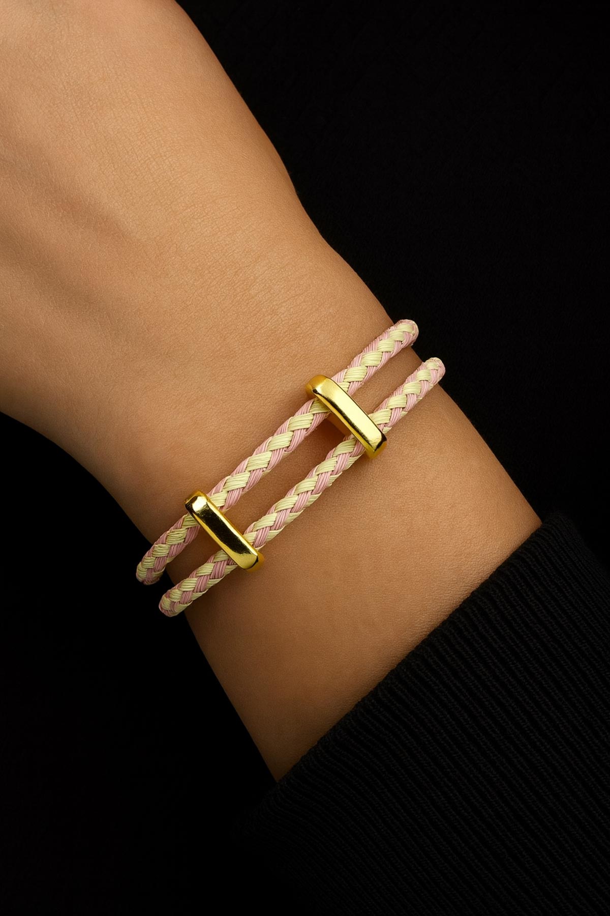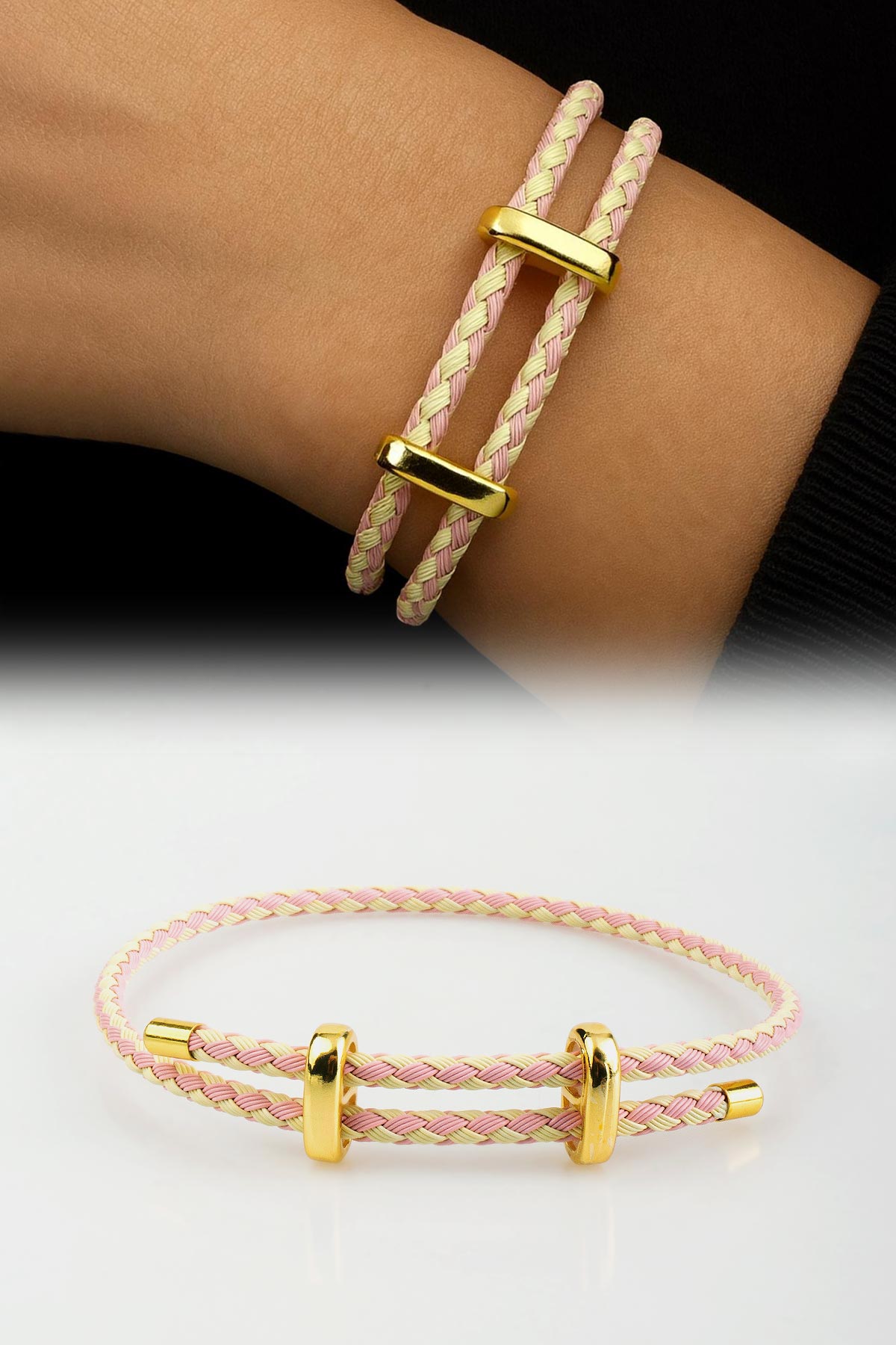 Ayarlanabilir Pembe-Sarı Örme Çelik Bileklik