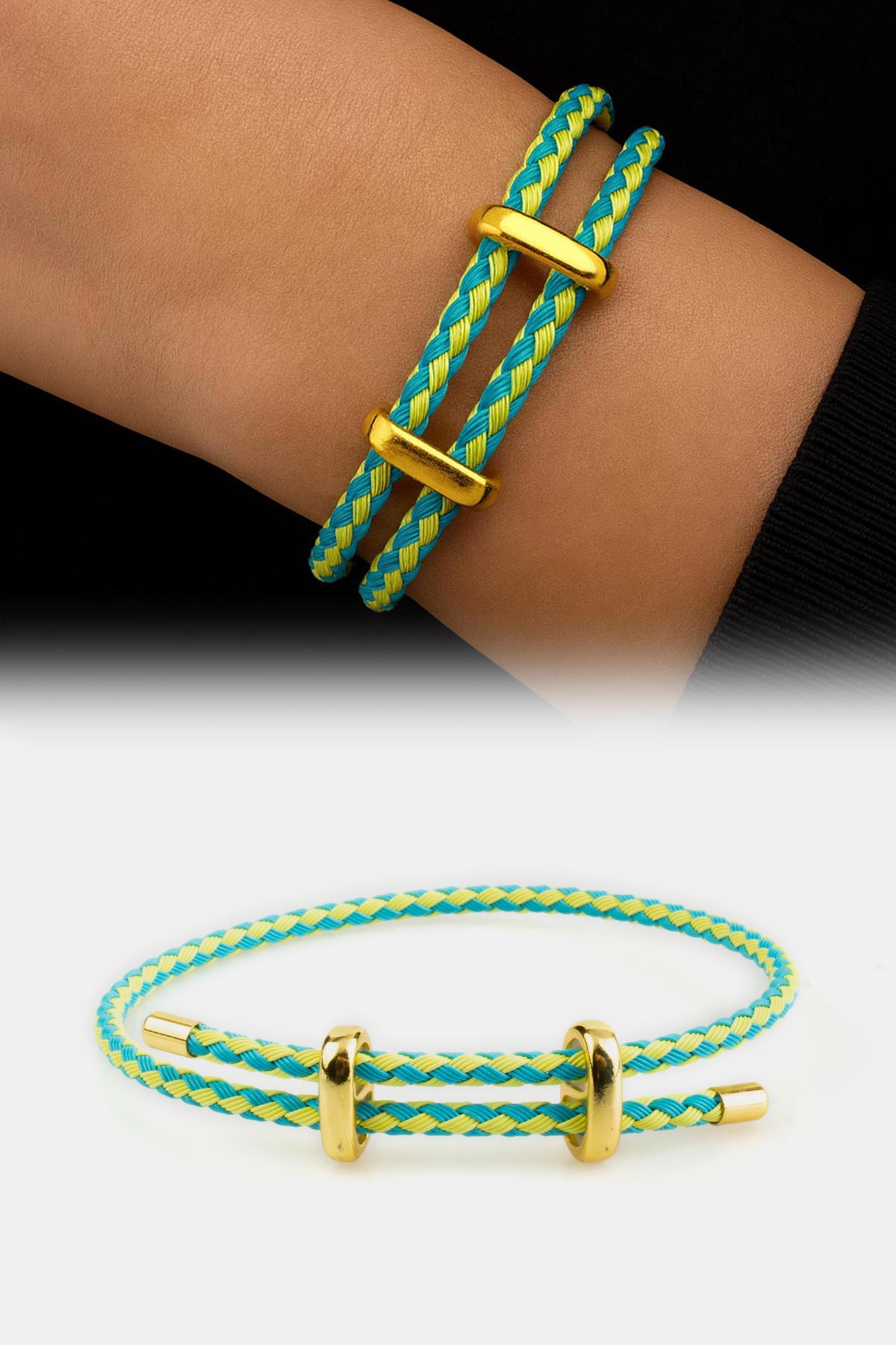 Ayarlanabilir Turkuaz-Sarı Örme Çelik Bileklik (BLKIPL-0021)