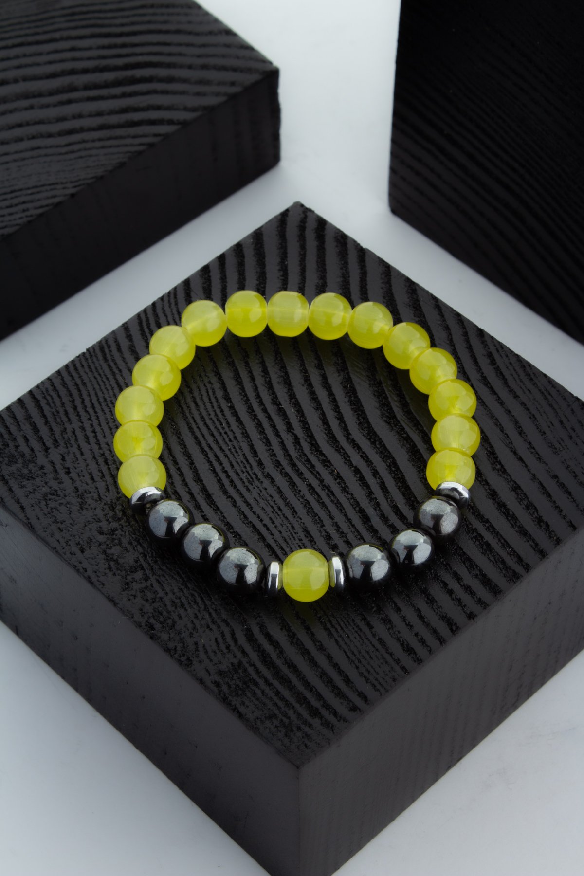 Cam - Hematit Doğal Taş Küre Kesim Bileklik (BLKMSN-0122)