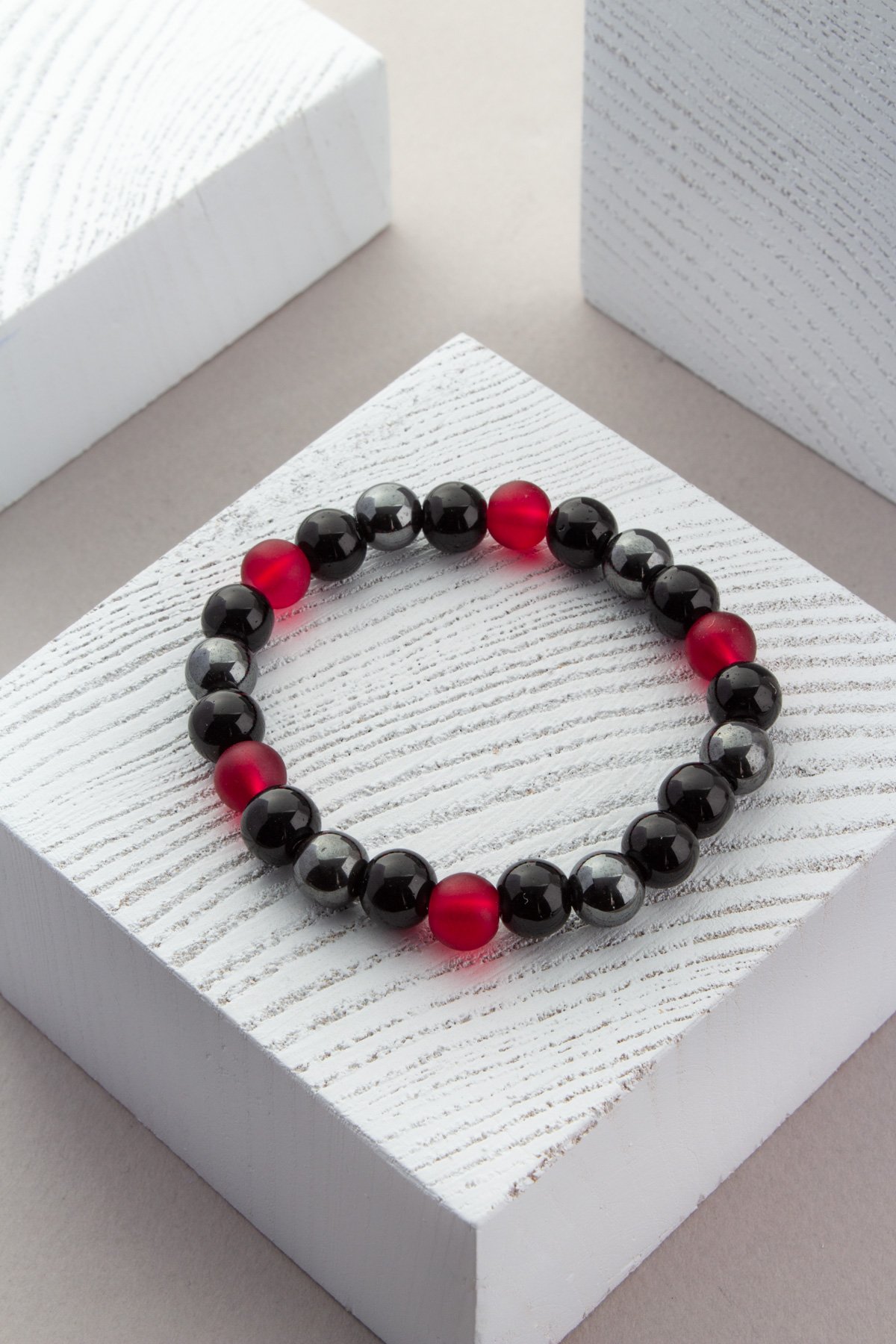 Cam - Hematit Doğal Taş Küre Kesim Bileklik (BLKMSN-0130)