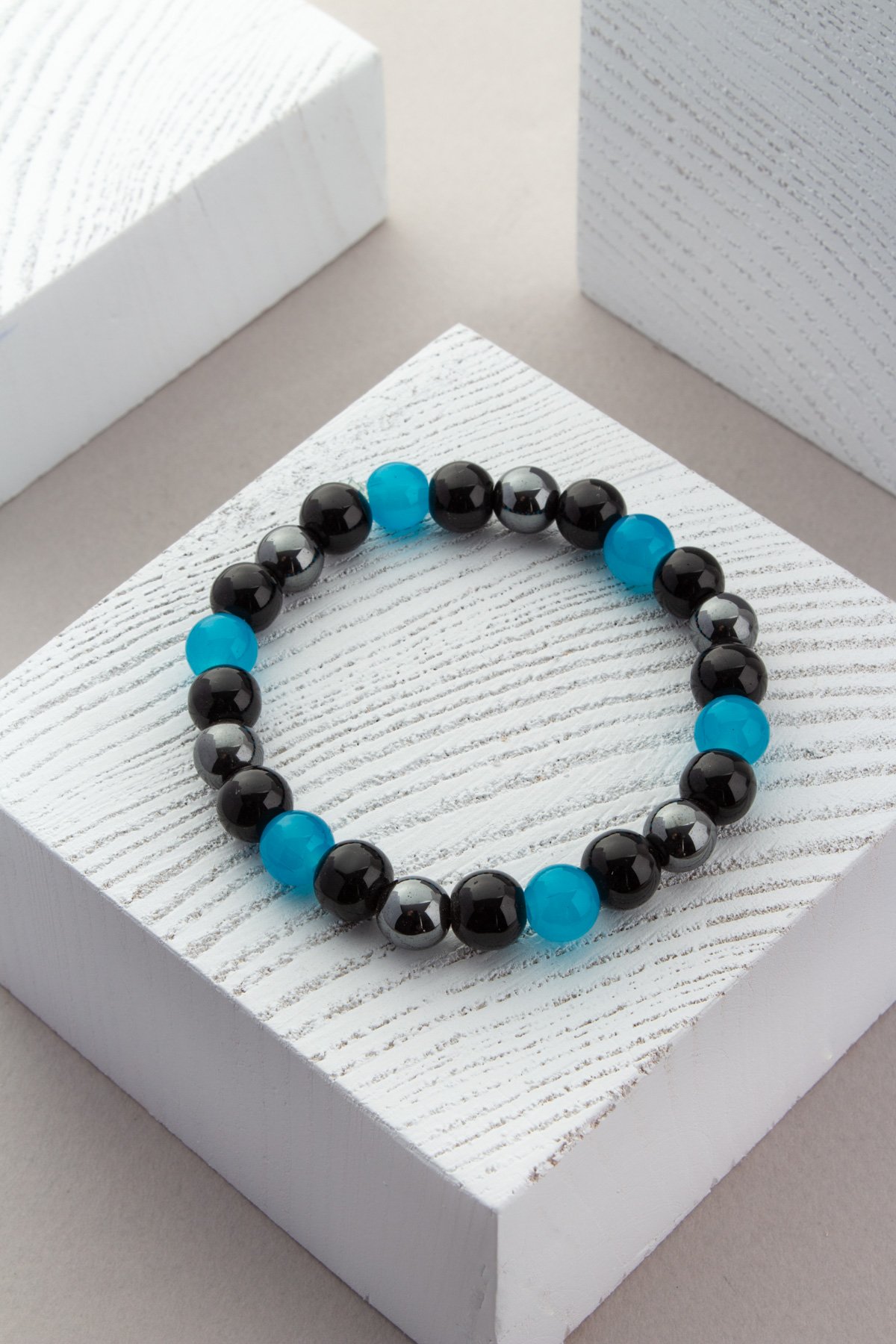 Cam - Hematit Doğal Taş Küre Kesim Bileklik (BLKMSN-0136)