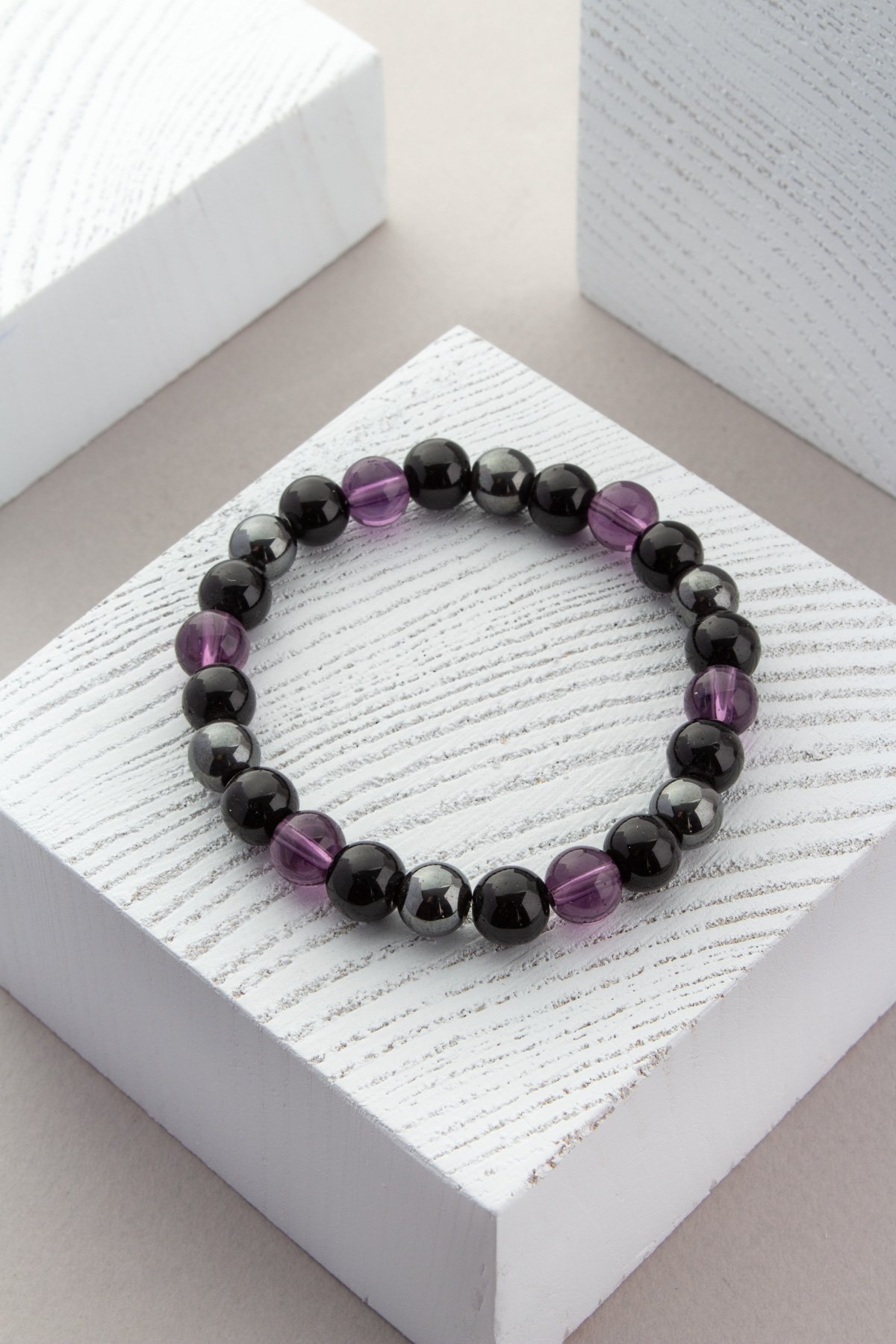 Cam - Hematit Doğal Taş Küre Kesim Bileklik (BLKMSN-0138)