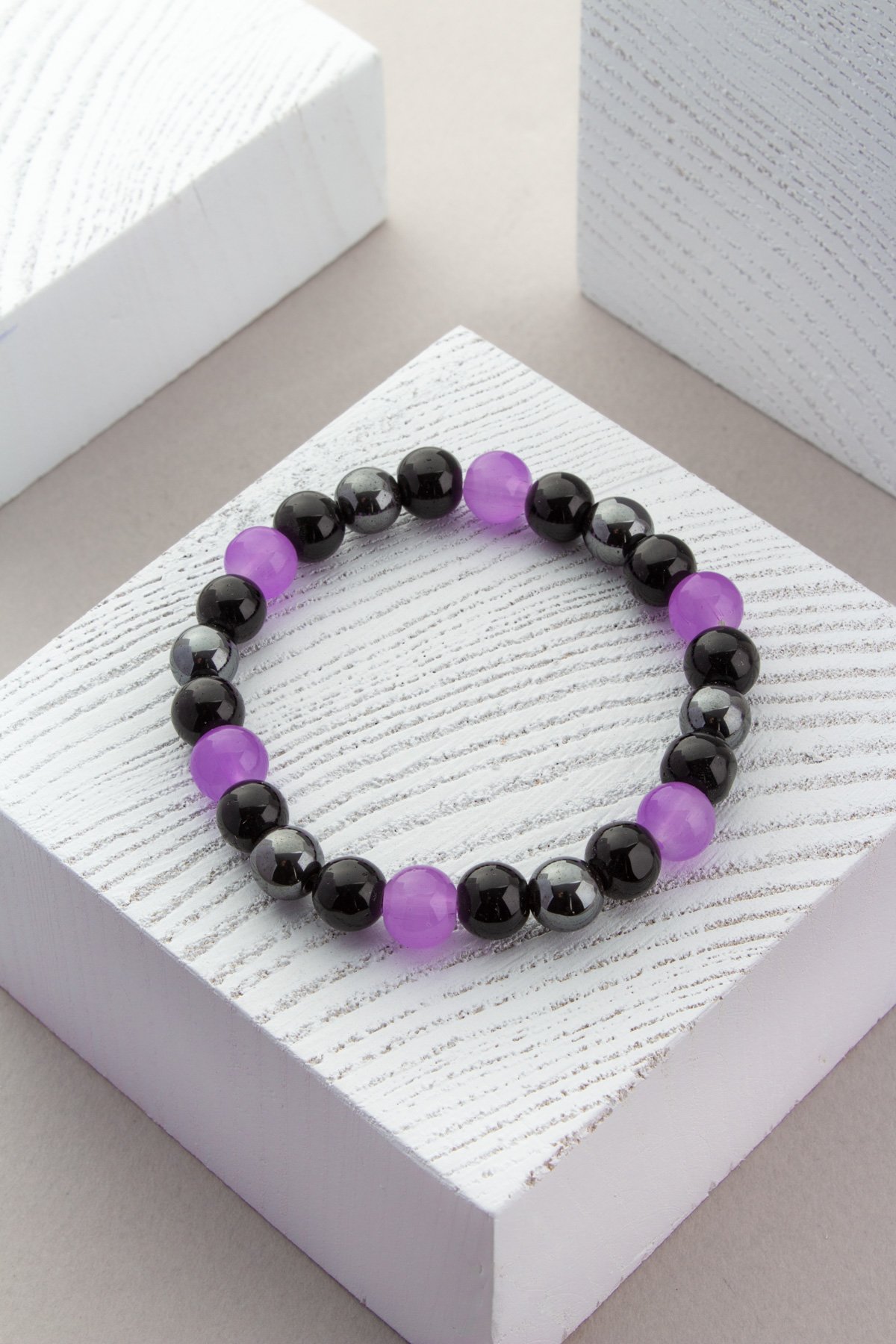 Cam - Hematit Doğal Taş Küre Kesim Bileklik (BLKMSN-0145)