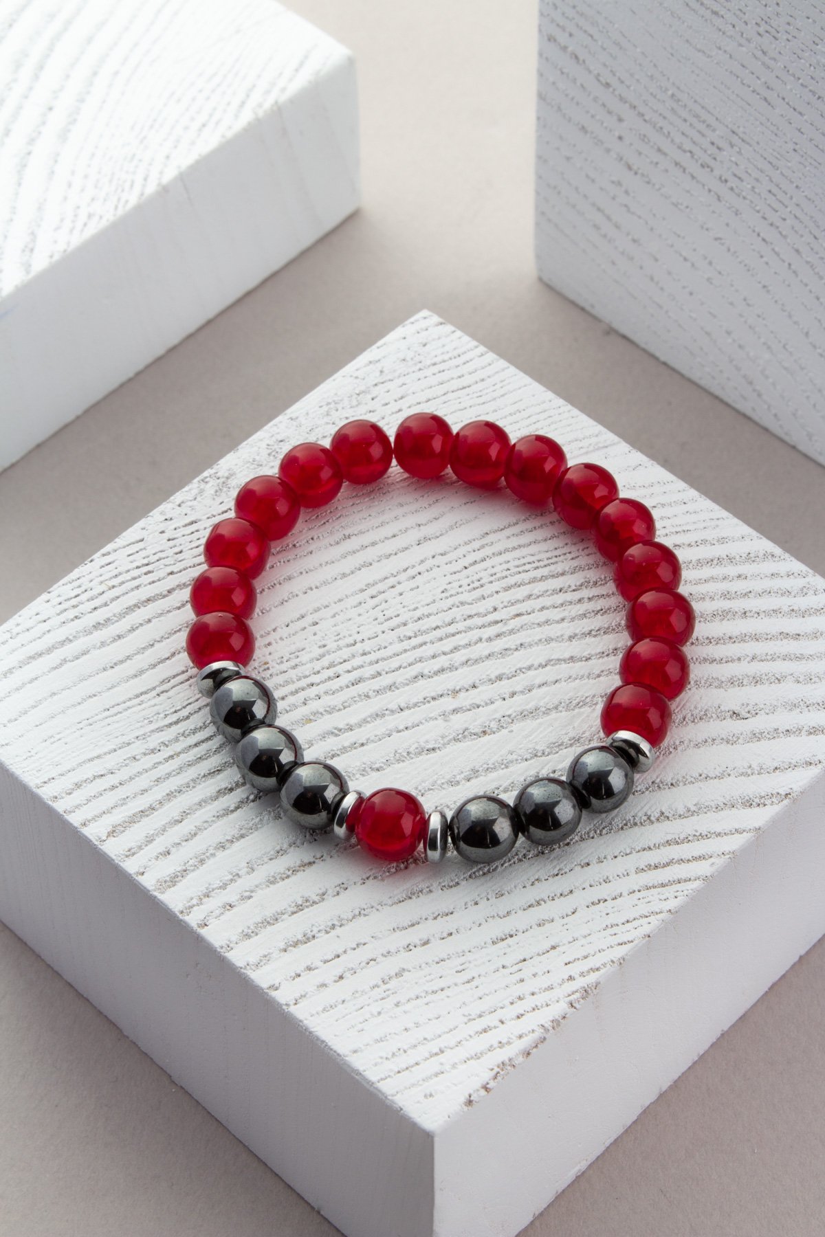 Metalik parlaklığıyla bilinen hematit, demir oksit içeriği sayesinde koyu gri, siyah veya kırmızı tonlarında olabilir. Sert yapısıyla takı tasarımında ve endüstriyel alanlarda kullanılır. Doğal mıknatıs özelliği olmamasına rağmen ağır ve dayanıklı bir mineraldir.