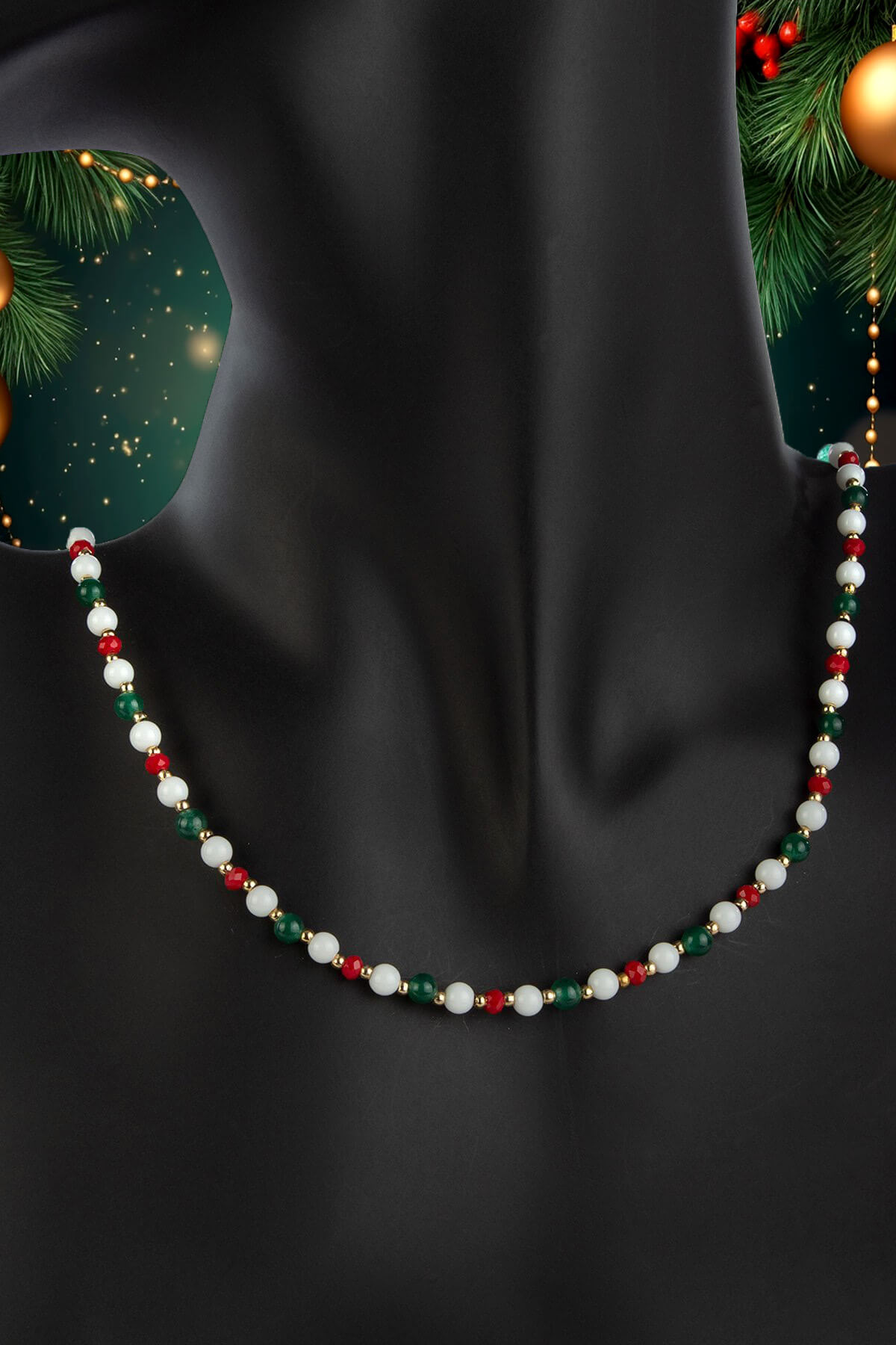Sıkma Doğal Taş Küre Kesim Tam Tur Renkli Yılbaşı Kolye (KLYDGL-0206)
