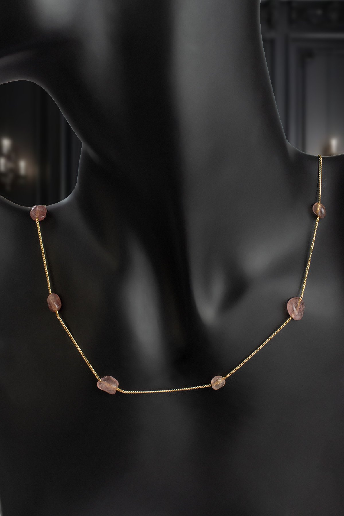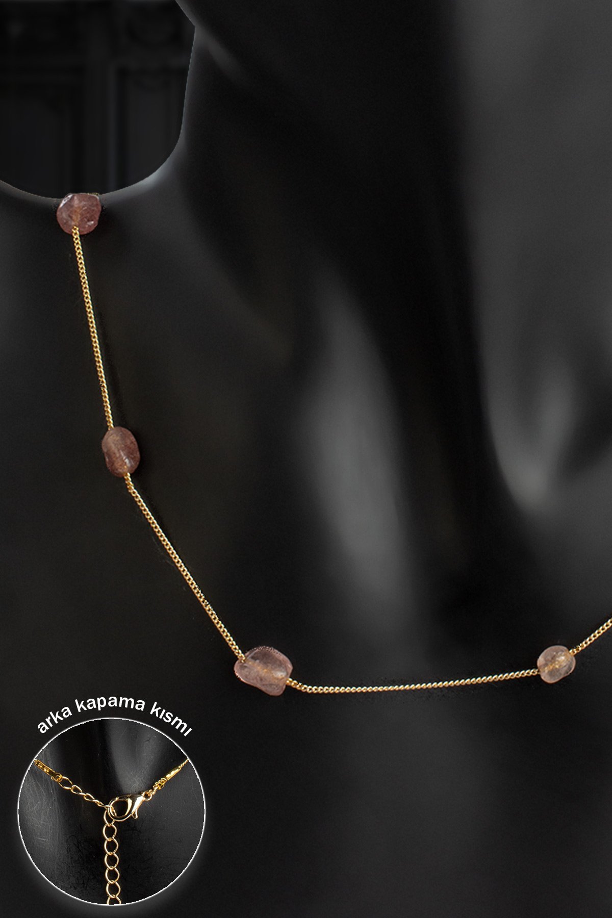 Çilek Kuvars Doğal Taş Tımbıl Kesim Kolye