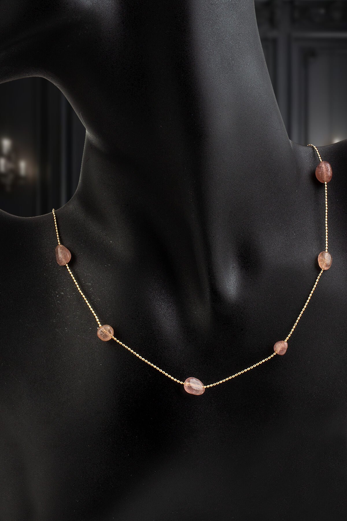 Çilek Kuvars Doğal Taş Tımbıl Kesim Taş Yapıştırma Kolye (KLYDGL-0499)