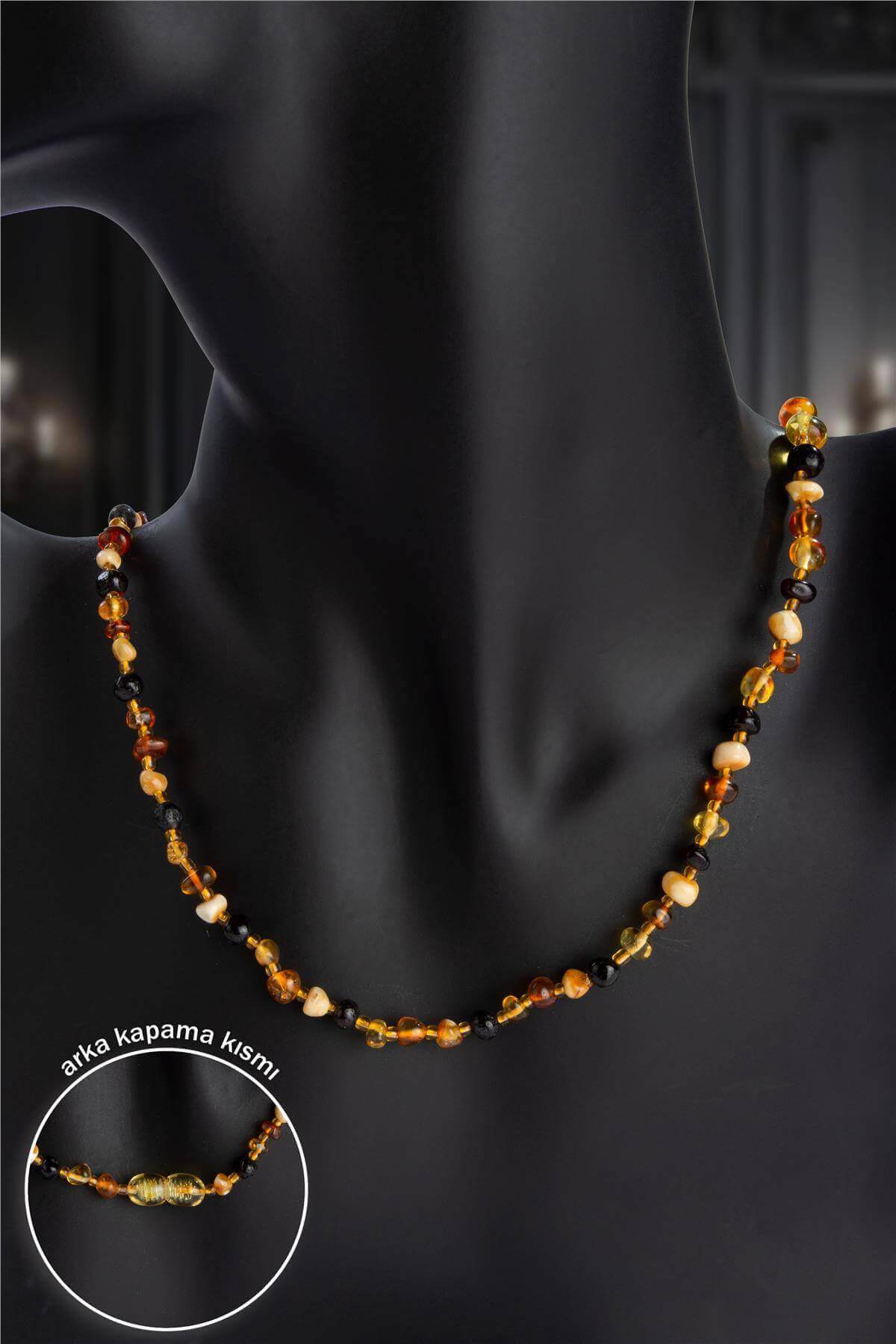 Damla Kehribar Karışık Ton Unisex Kolye (KHRKLY-0007)