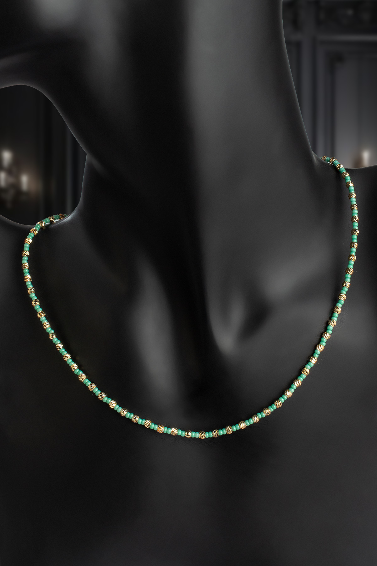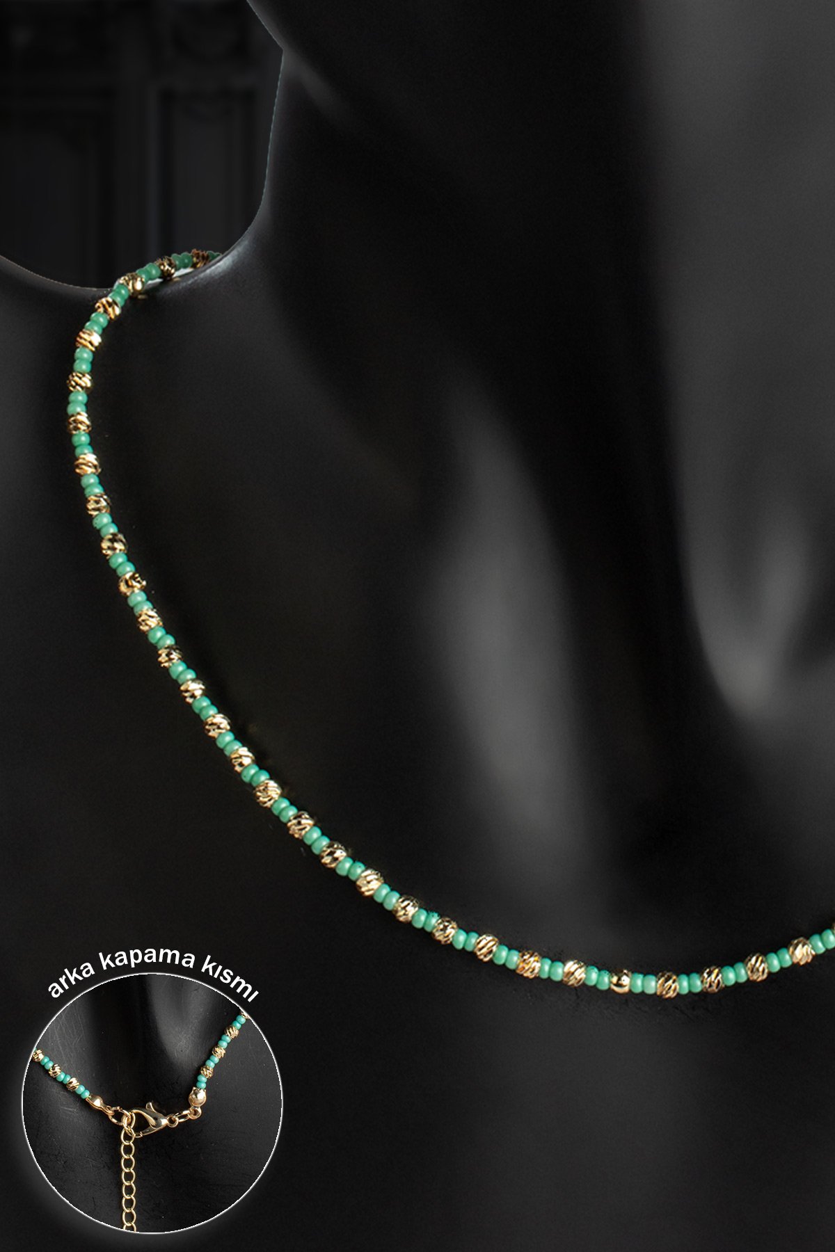 Dorika Kum Boncuk Turkuaz Yeşil Kolye (KLYMTL-0001)