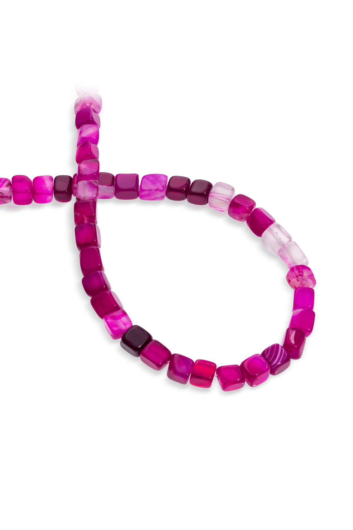 Akik Doğal Taş Fuşya Küp Kesim 7mm Dizi