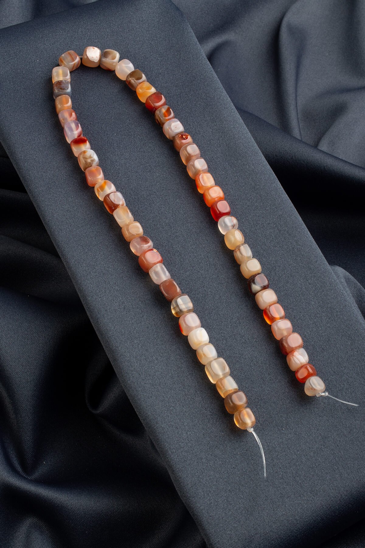 Akik Doğal Taş Parlak Beyaz-Kızıl Küp Kesim 8x8mm Dizi [AA]