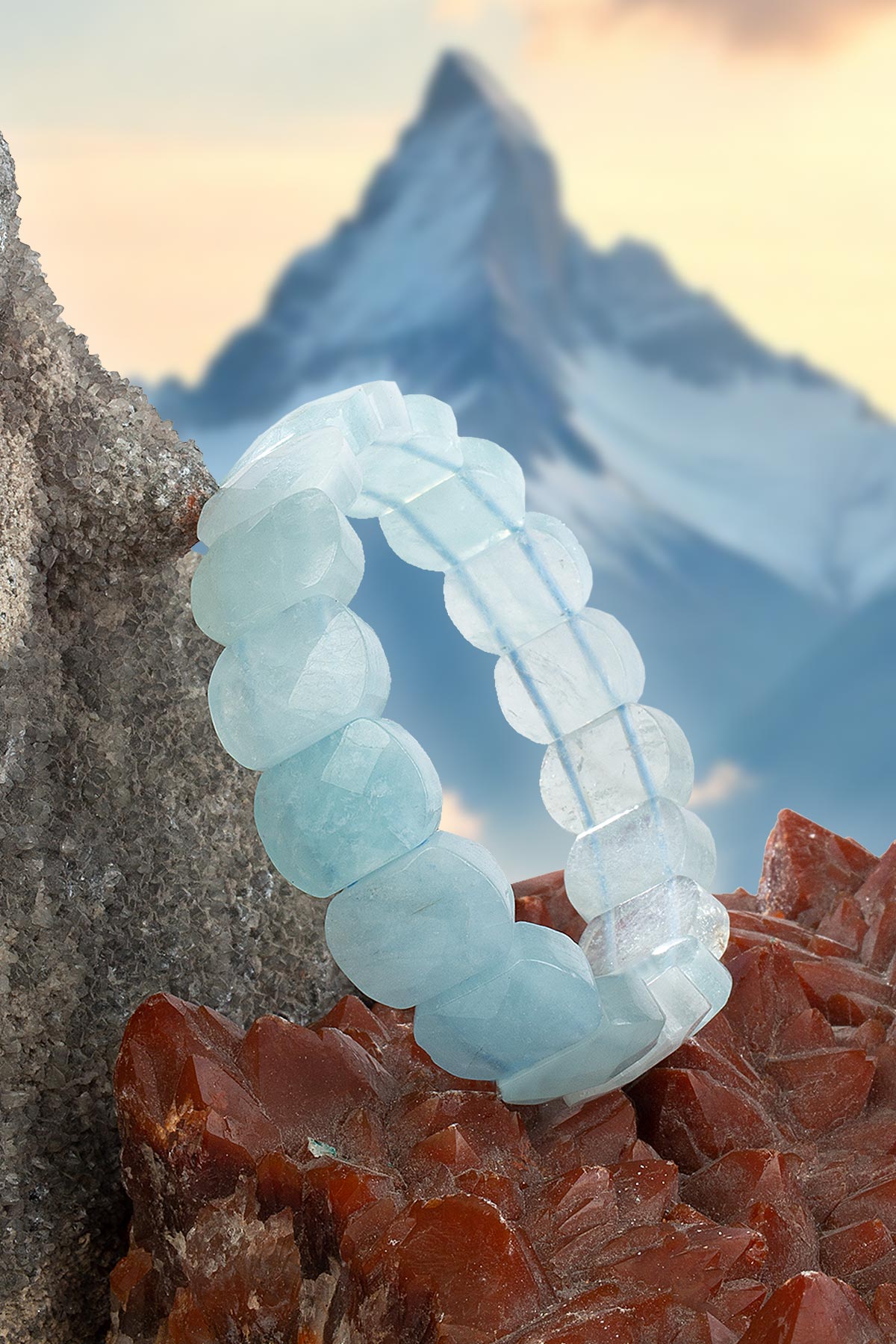 Akuamarin Doğal Taş Parlak Oval Faset Kesim Roleks 11x15mm Bileklik