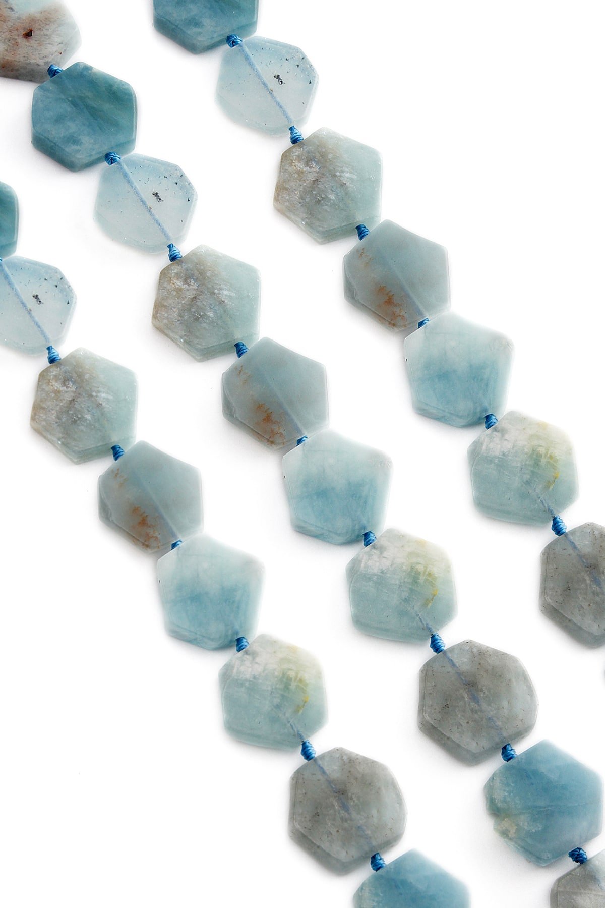 Aquamarine Natural Stone Flat Hexagon Cut 17x5mm String Of Beads