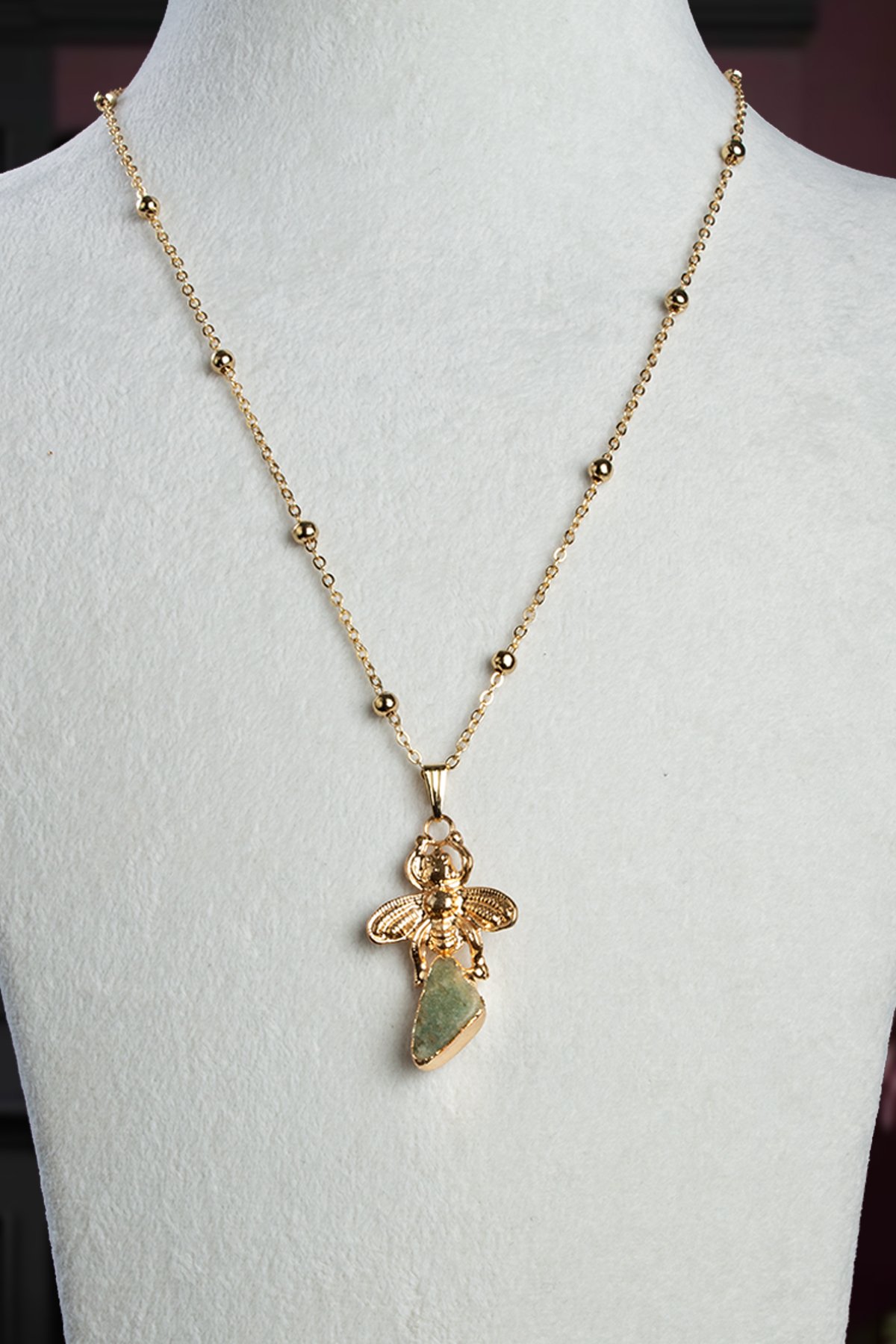 Amazonit Doğal Taş Tamburlanmış Kesim Lak Kaplama Kolye (KLYDGL-1554)