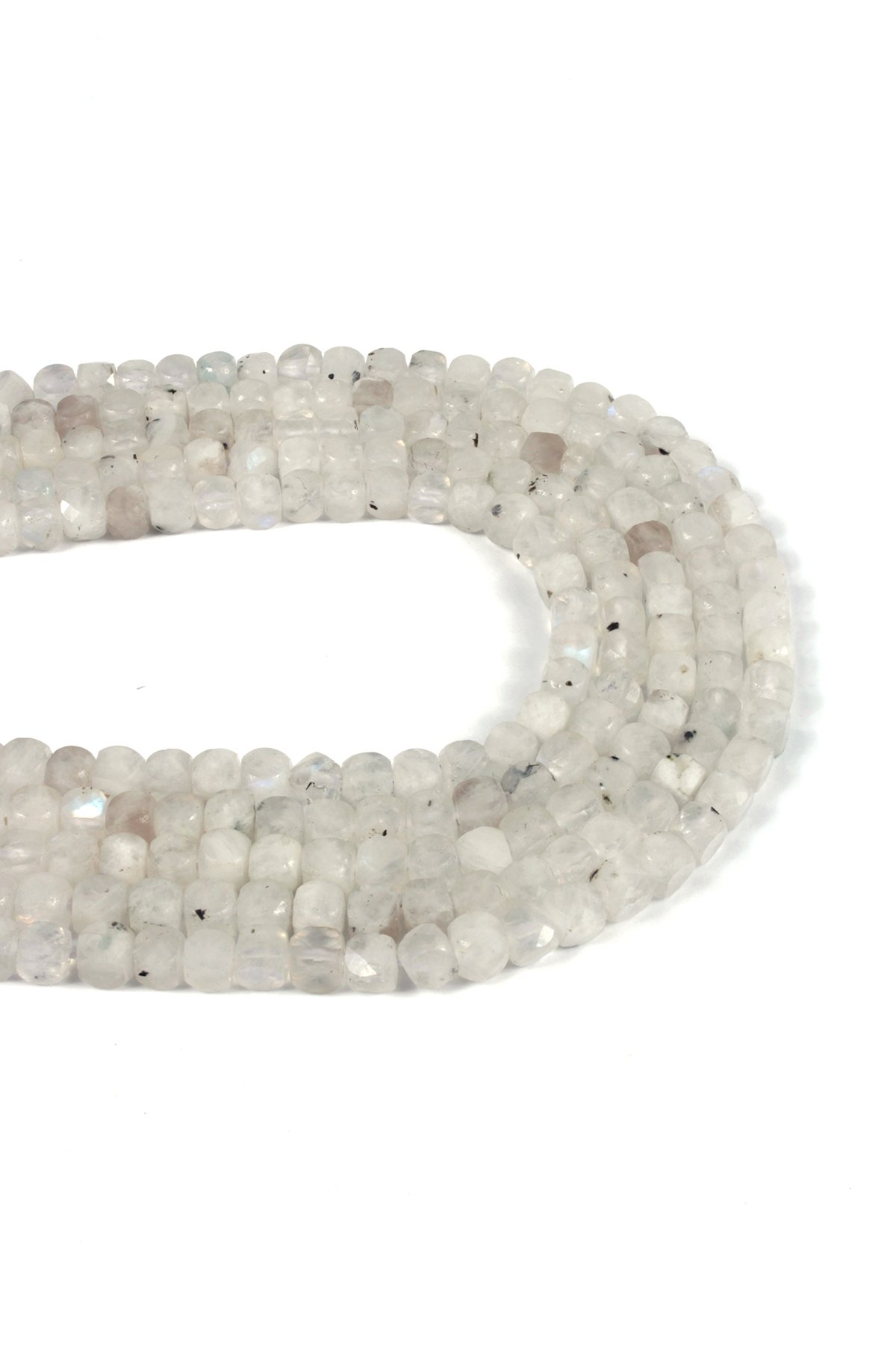 Moon Stone Natural Stone Shiny Cube Cut 4x4mm String Of Beads