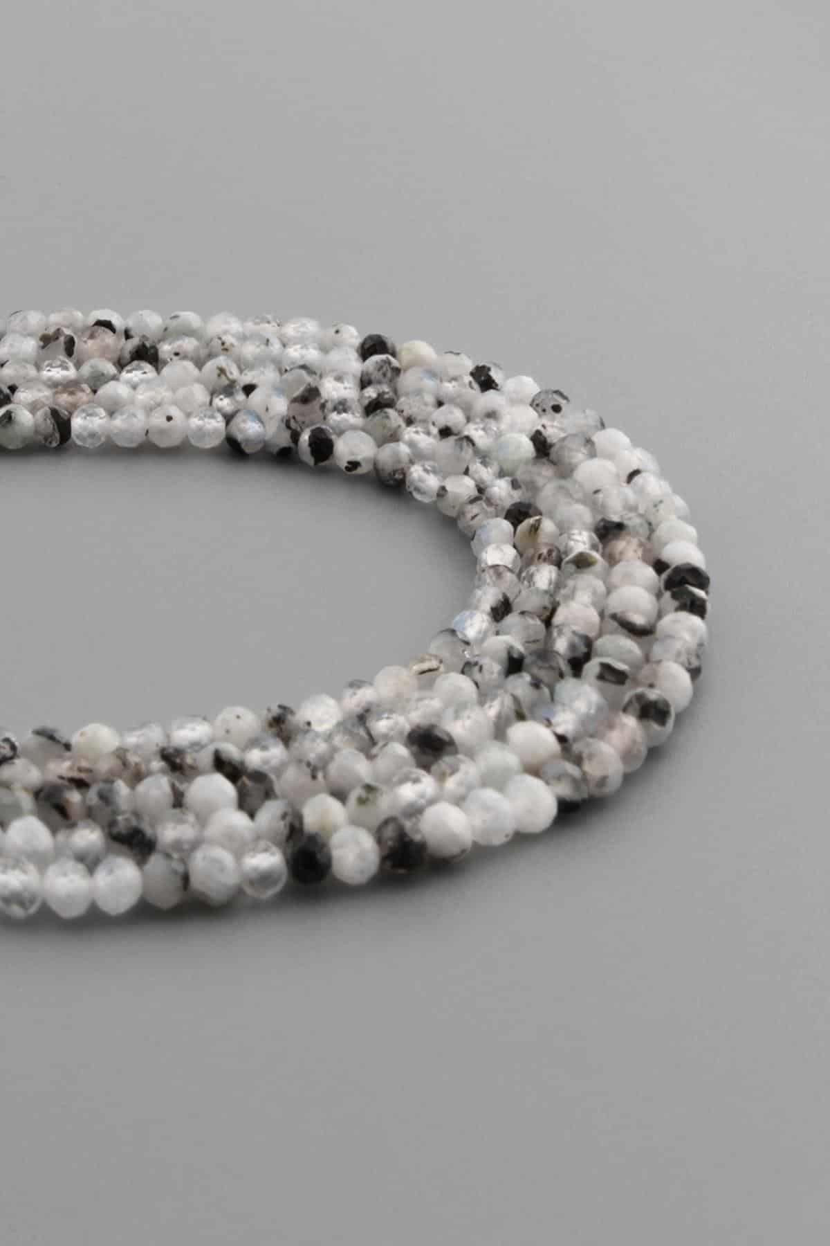 Moon Stone Natural Stone Shiny Black Mottled Globe Crystal Cut 3mm String Of Beads [AB]