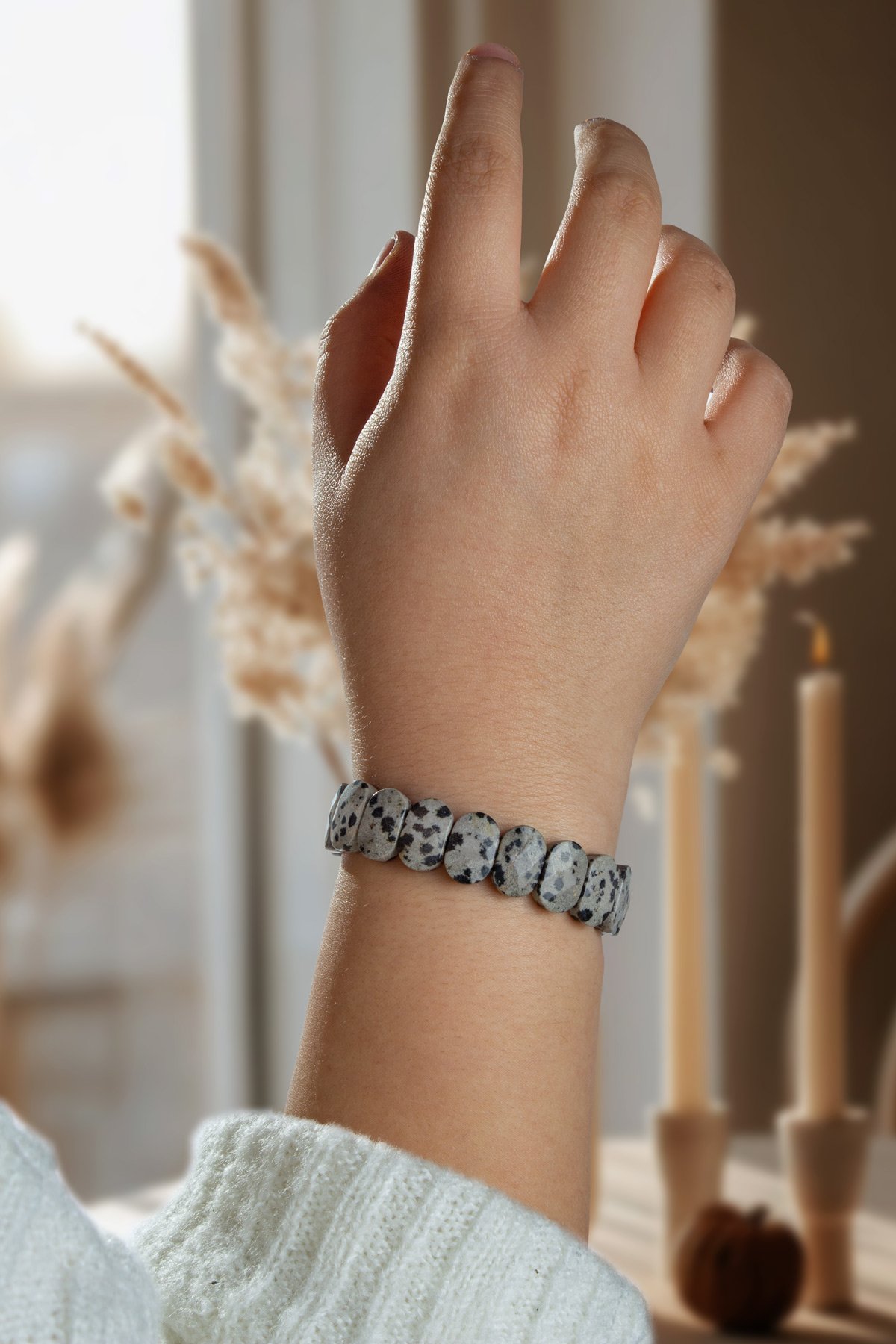 Benekli Jasper Doğal Taş Oval Kesim Roleks Bileklik (BLKRLK-0012)