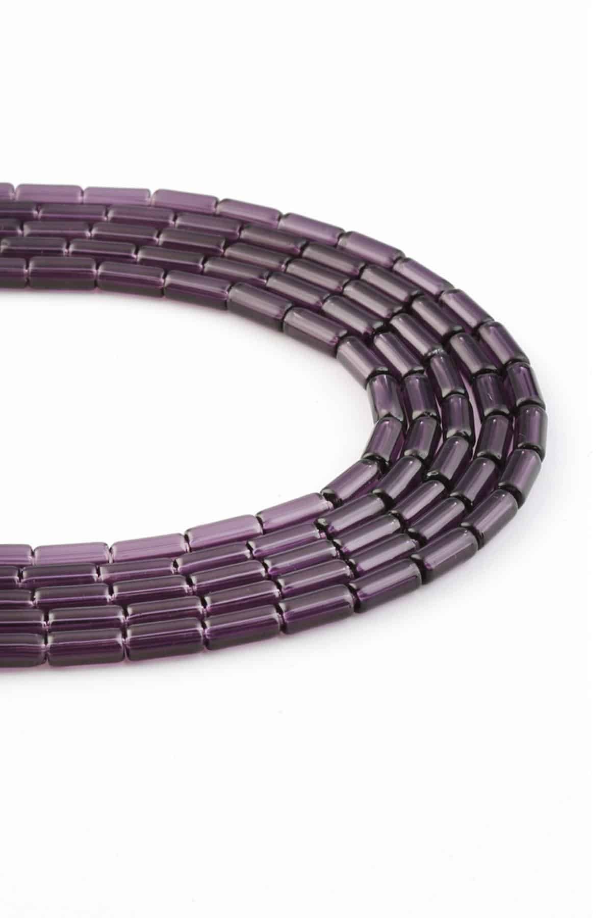 Glass Shiny Purple Cylinder Cut 5x10mm String Of Beads