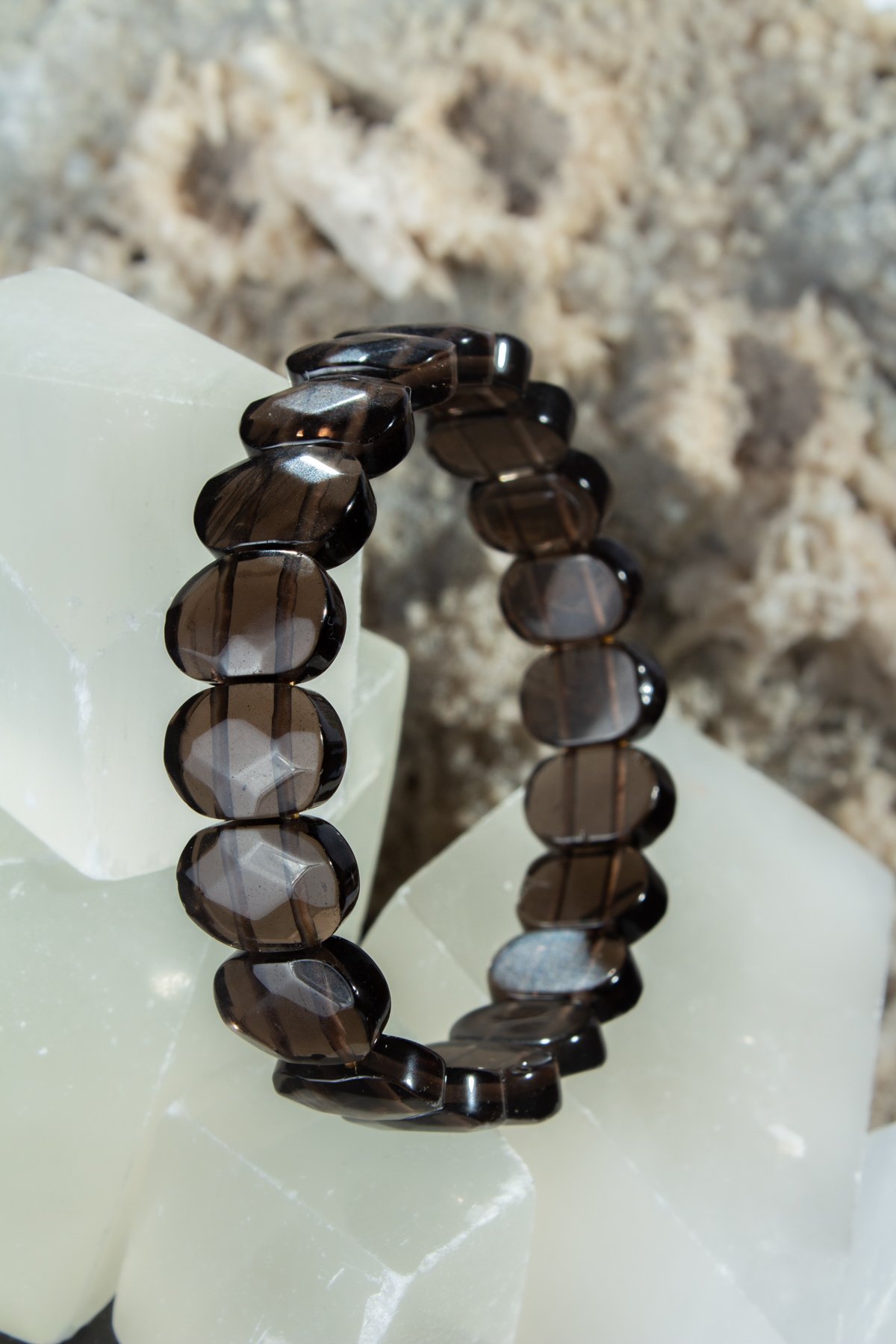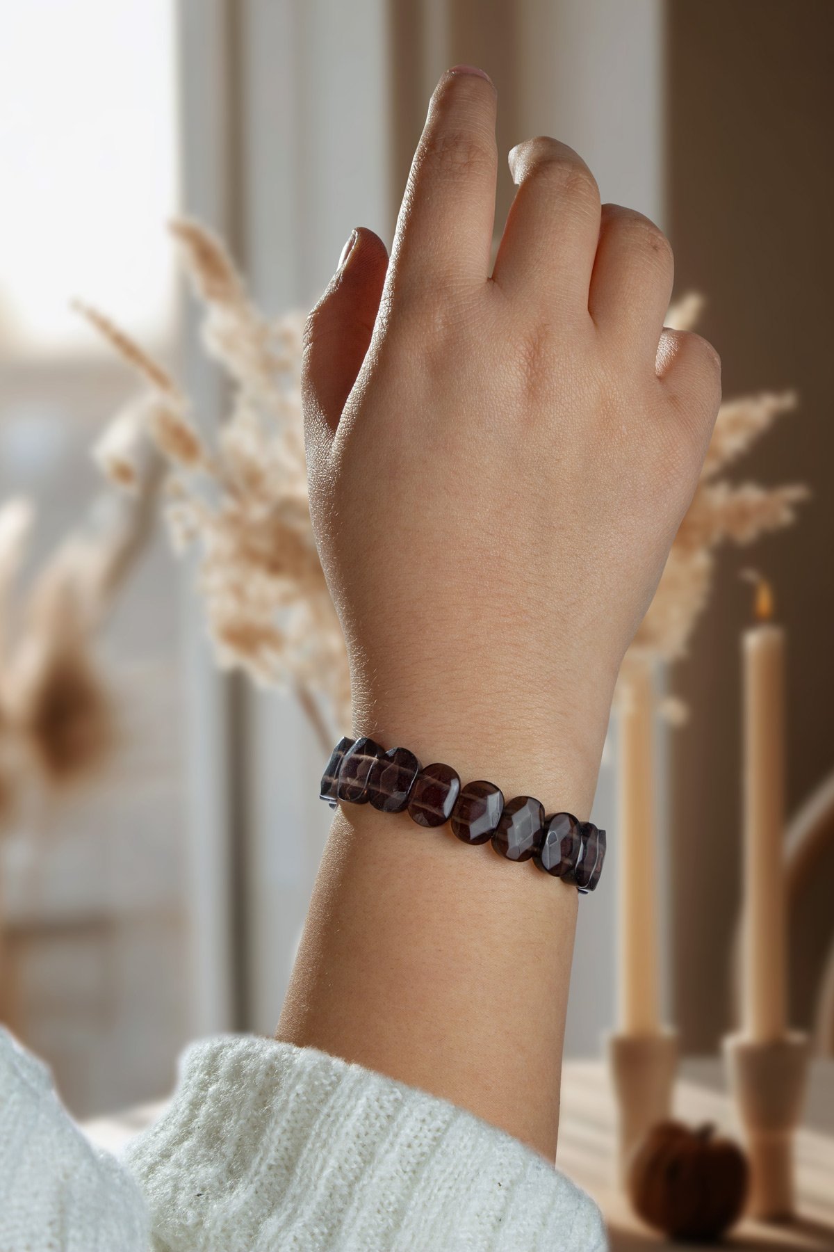 Dumanlı Kuvars Doğal Taş Oval Kesim Roleks Bileklik