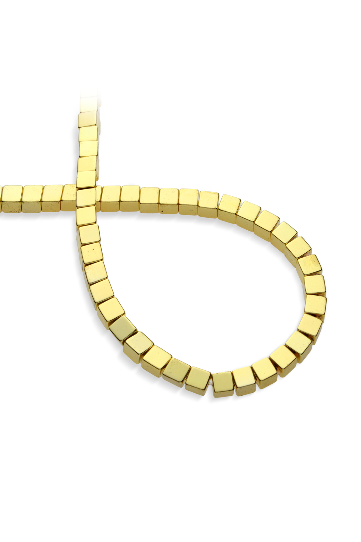 Hematit Doğal Taş Altın Sarı Kare Kesim6x6mm  Dizi