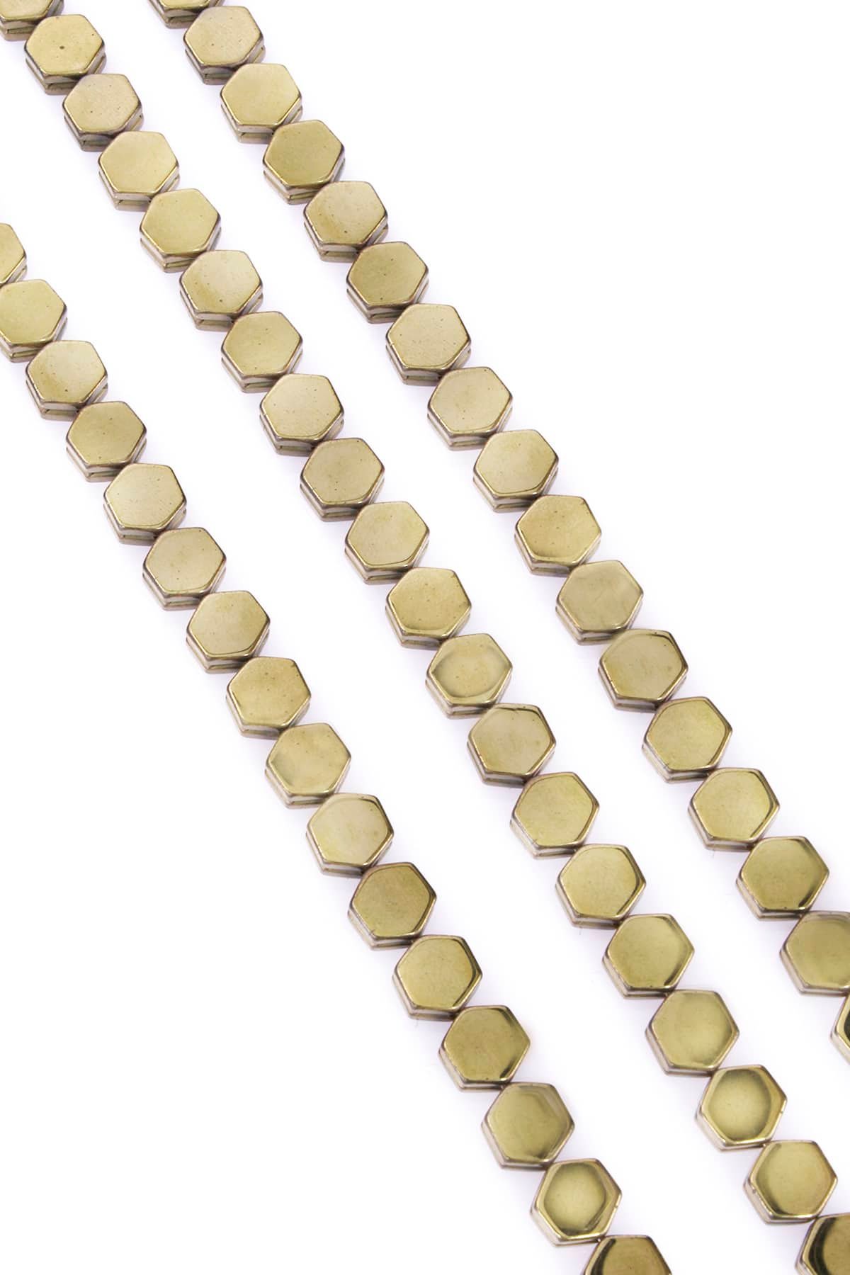 Hematite Natural Stone Antique Yellow Hexagon Cut 8x5mm String Of Beads (5120-0040)