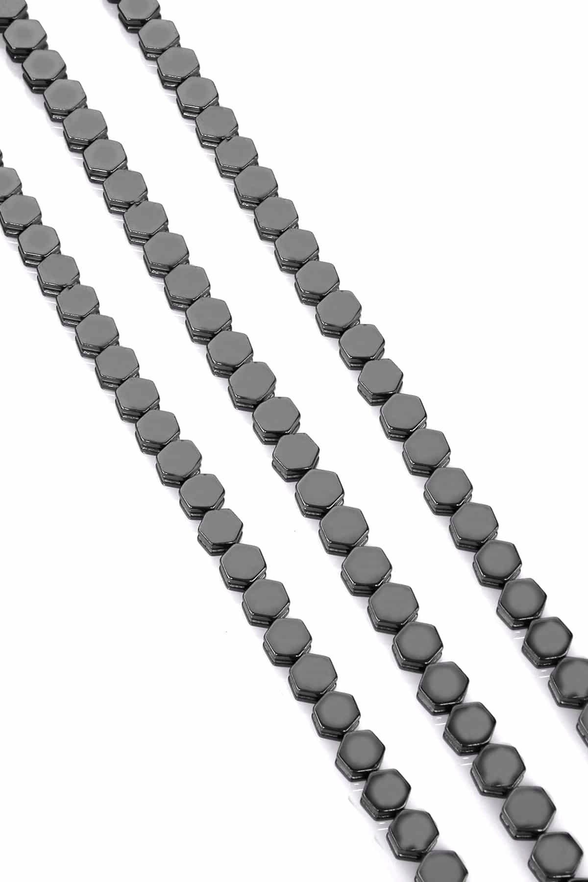 Hematite Natural Stone Smoked Hexagon Cut 7x4mm String Of Beads (5118-0002)
