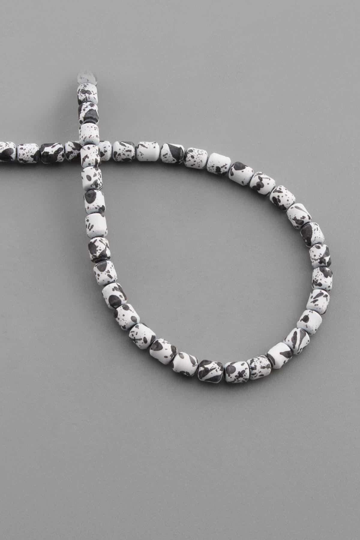 Hematite Natural Stone Matte Mottled White Cylinder Cut 4x5mm String Of Beads