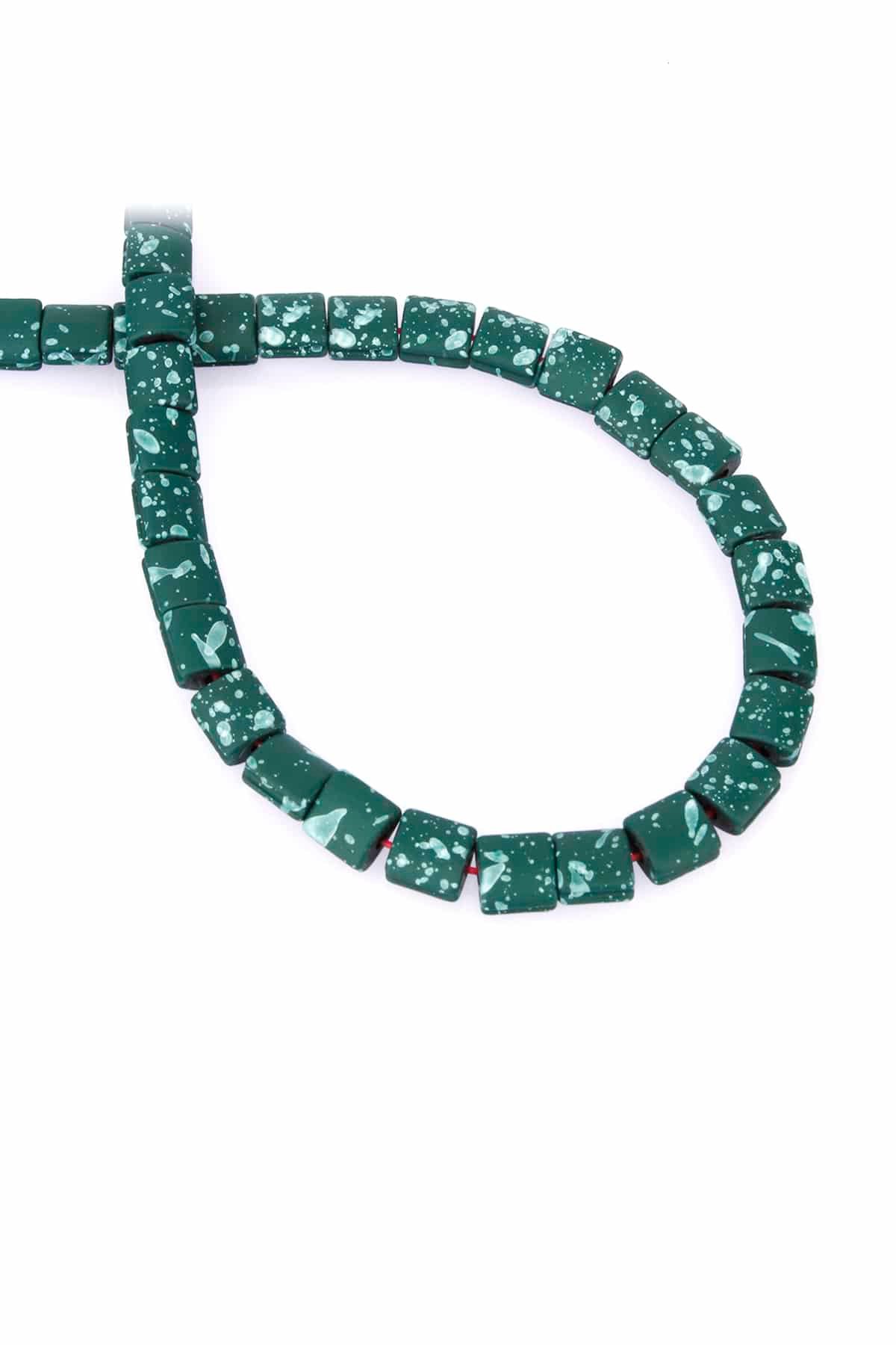 Hematite Natural Stone Matte Mottled Khaki Green Square Cut 7x7mm String Of Beads (5116-0073)