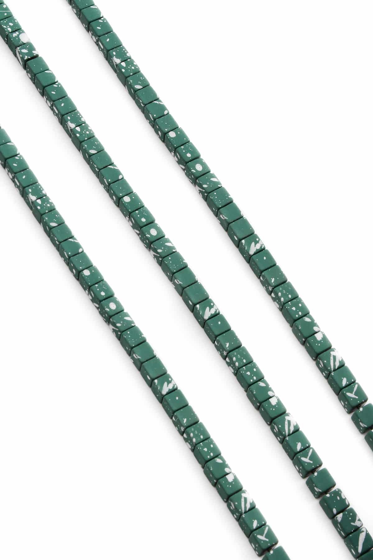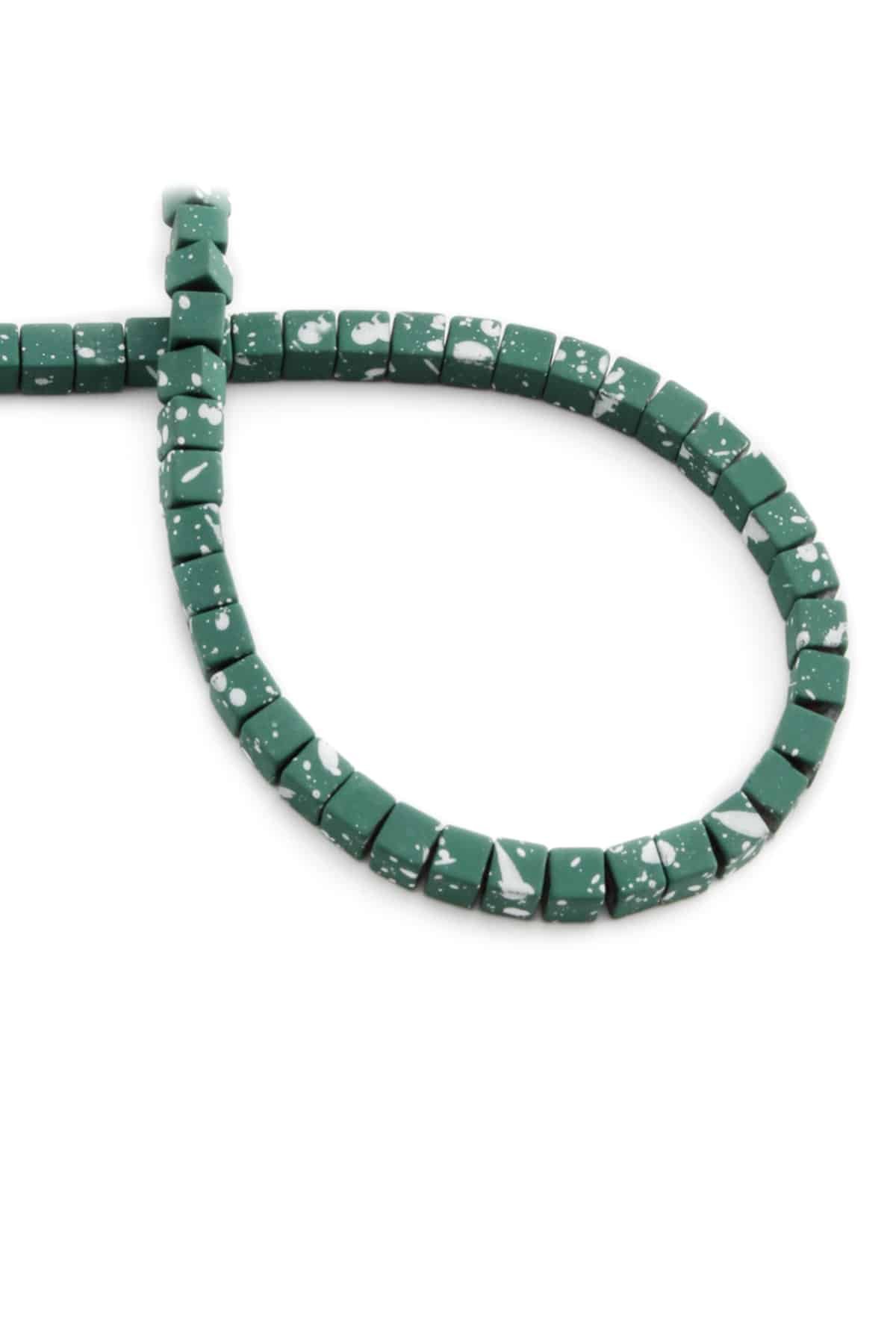 Hematite Natural Stone Matte Mottled Green Cube Cut 4x4mm String Of Beads (5080-0073)