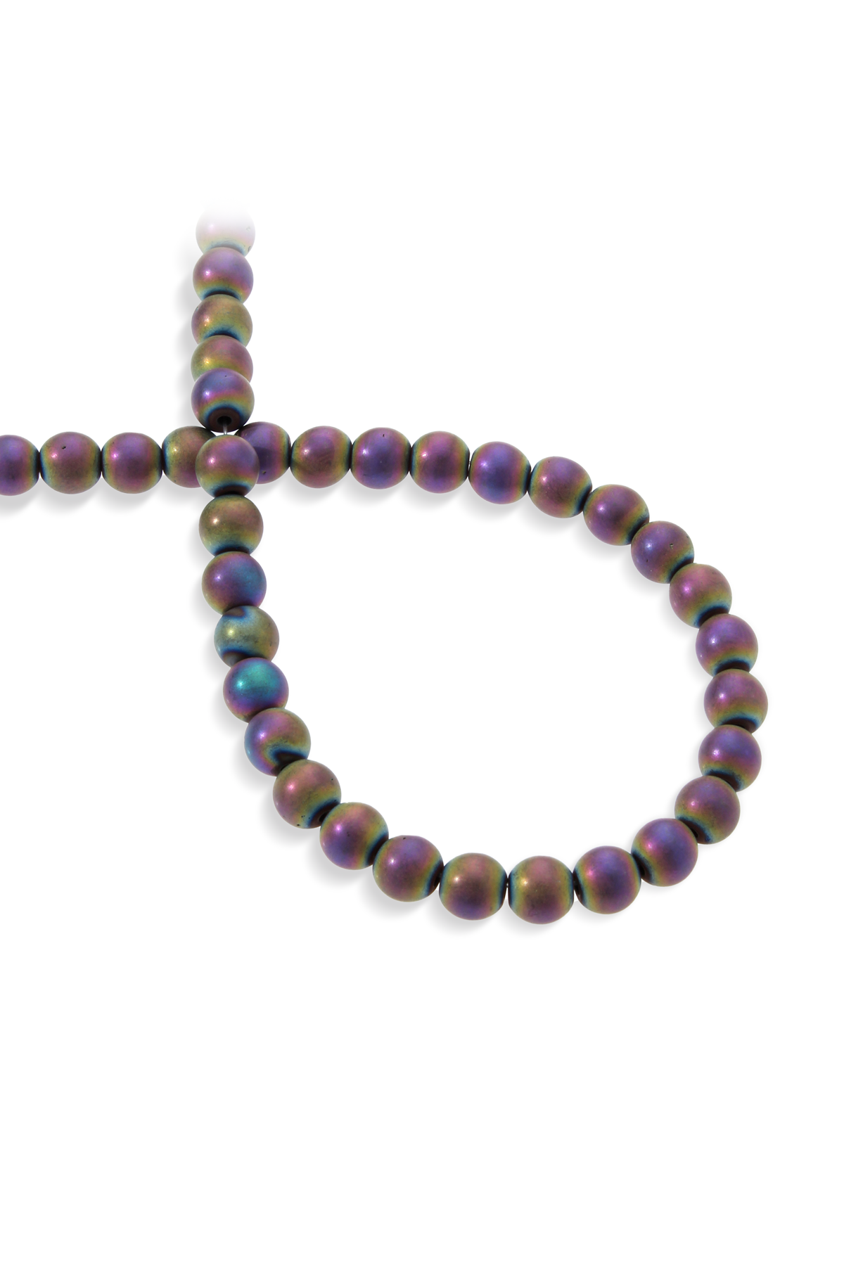 Hematit Doğal Taş Mat Gökkuşağı Küre Kesim 8mm Dizi